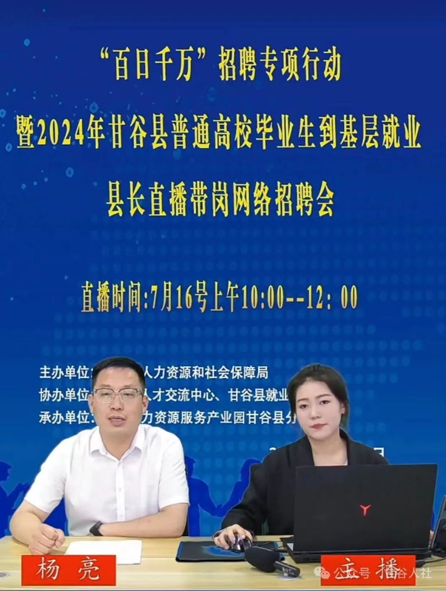 新天水讯 据甘谷县融媒体中心消息 为全面贯彻党的二十大精神及全国和省市高校毕业生等青年群体就业创业工作电视电话会议精神,深入实施好未就业普通高校毕业生到基层就业民生实事项目。7月16日,甘谷县举办“百日千万”招聘专项行动暨2024年普通高校毕业生到基层就业县长直播带岗网络招聘会。