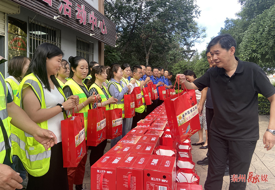 活动现场,秦州区总工会工作人员为高温下坚守岗位的环卫工人、综合执法人员、消防员等一线工作人员送去了茶叶、冰糖、菊花等防暑降温用品,感谢他们的辛勤付出和贡献。大家纷纷表示,要持之以恒做好本职工作,以实际行动当好城市的“守护人”。