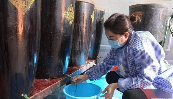 车间里的醋,在充分发酵后,终于开始出醋了。行家们把这个环节叫淋醋。淅淅沥沥的滴答声,听起来就像是一首奏鸣曲,十分悦耳动听。