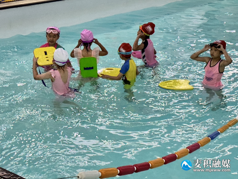 新天水讯 据麦积区融媒体中心消息 随着气温的持续攀升,游泳成为麦积区市民特别是青少年避暑健身的首选。近日,记者走访发现,由于暑期新增学生人群,游泳总体人数增多,麦积区各游泳馆人气爆棚。