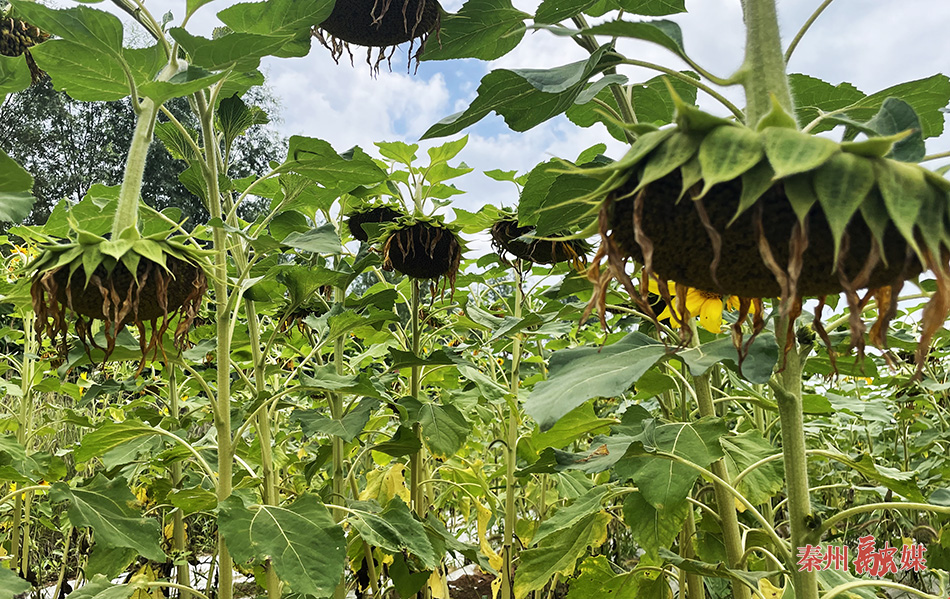 同样,今年曹集村种植的500油葵也已经进入了果熟期。一个个硕大的油葵压弯了枝干。曹集村党支部书记曹立学每天都会到田间察看油葵长势。望着500亩金灿灿的油葵,曹旭军脸上挂满了笑容。