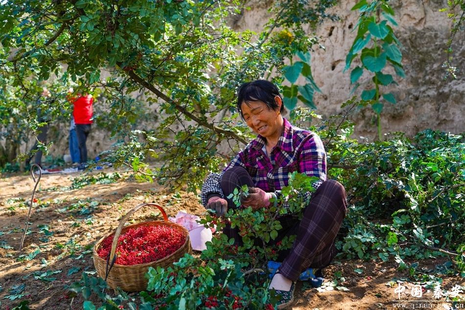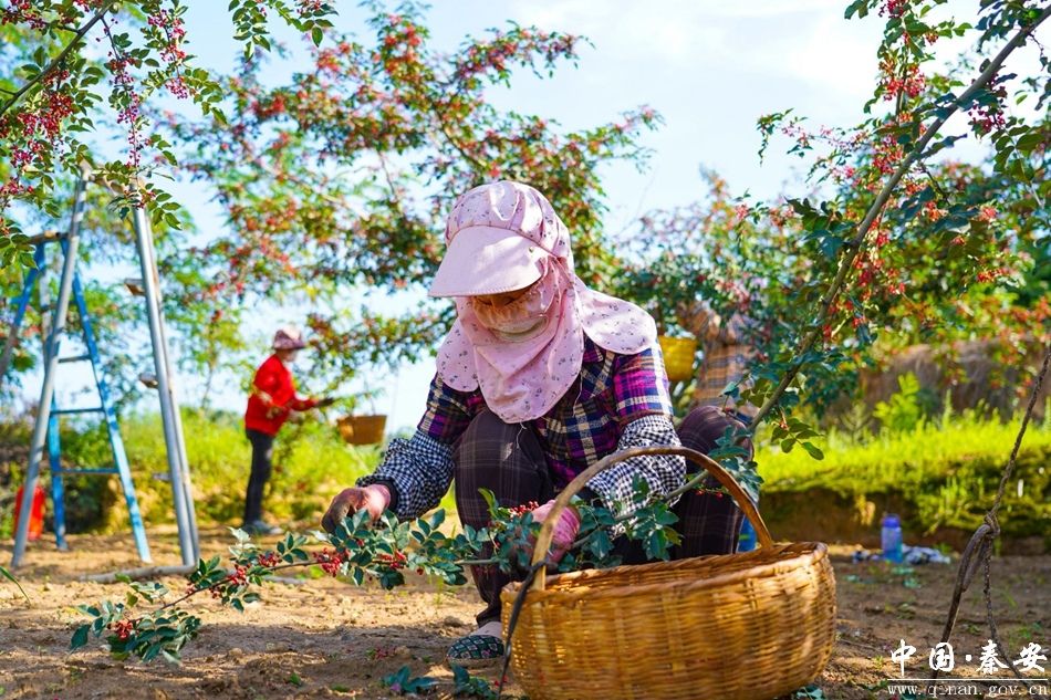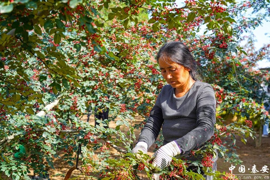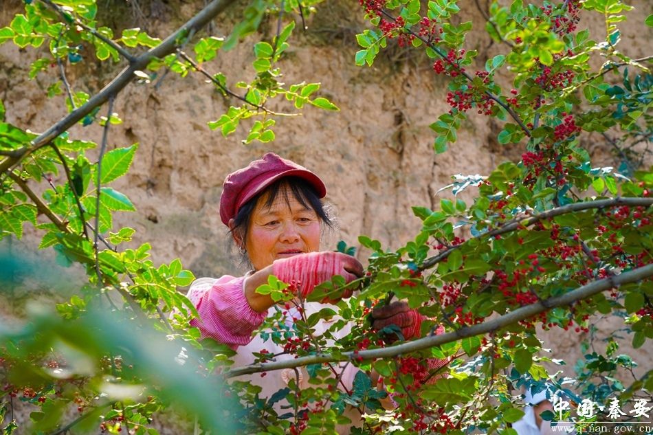 “我是从通渭这边过来的,秦安花椒长得很好,采摘起来比较容易,一天能摘五十斤,挣150块钱左右,补贴一下家用。”外来务工人员何宝红边采摘边笑着说道。