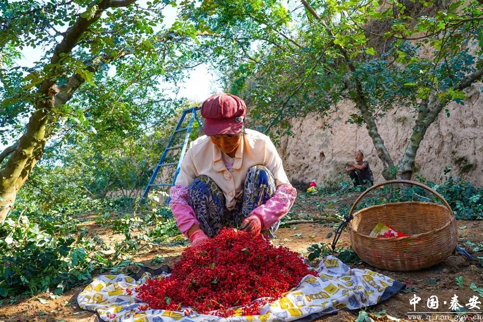 千户镇是秦安花椒主产区之一,得益于光照充足、昼夜温差大的气候地理条件,产出的花椒颗粒大、肉质厚、含油多、香浓味麻,大受消费者的青睐。