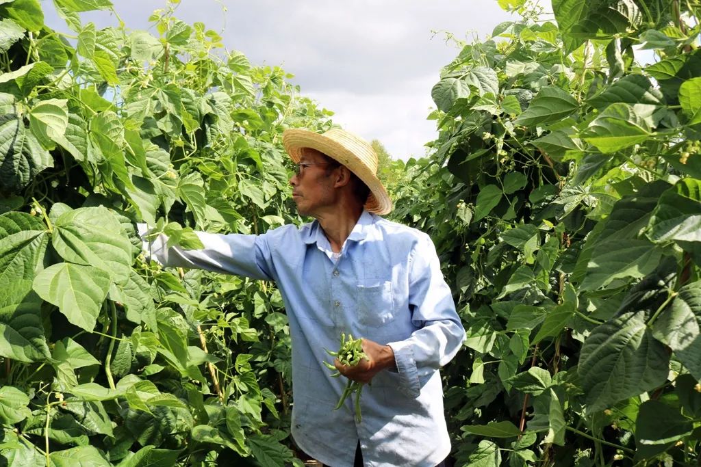 豆角在武山的栽培时间较早,因其种植时要搭架,群众称之为架豆。20世纪60年代初,当地群众为解决自家的吃菜问题,利用自家自留地建成小菜园,种植各类蔬菜,豆角也成了其中常客。智慧的武山人民,利用豆角栽培特性进行自繁自种,延续种植,但在2000年之前尚未形成规模。2000年之后,先是技术人员在日光温室中种植豆角成功,取得了较高收益。2004年前后,农技人员利用豆角适应性强、耐旱的生产特性,在麦后复种地膜菜瓜技术的基础上,开始试验油菜地复种豆角种植,经过两年多的试验和探索,成功总结出了油菜地复种豆角种植技术并开始在全县浅山半干旱区大面积推广。2007年,武山县经作站在杨河乡军民村试验二阴山区正茬豆角种植12 亩,获得成功,次年开始在二阴山区进行推广。之后,豆角种植在全县范围推广,之前多是山区农民向川区农民学习,这次是川区农民向山区农民学习,豆角种植实现了山川并进、遍地开花。2016年,武山县委、县政府将豆角种植作为助力脱贫攻坚的一项重要措施来抓,制定扶持政策,安排奖补资金,豆角种植和推广再掀新高潮。