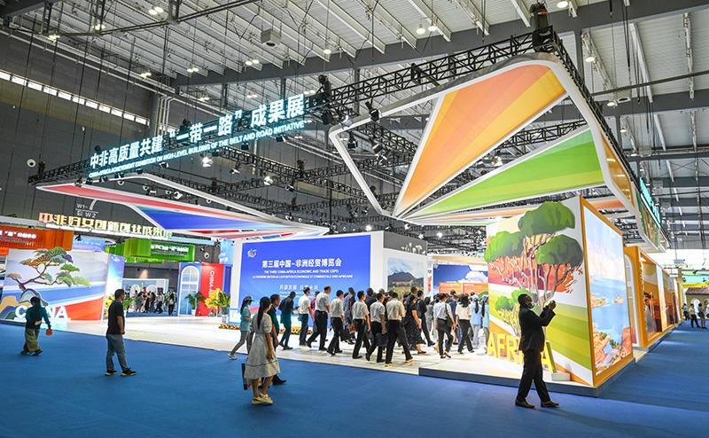 △2023年6月29日,第三届中国—非洲经贸博览会在湖南长沙开幕。图为参会嘉宾在长沙国际会展中心参观中非高质量共建“一带一路”成果展。