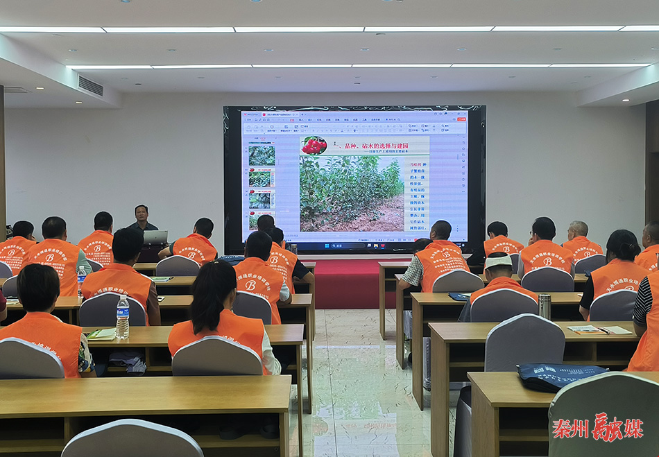 在平南镇孙集村“新农人”培训基地,一堂专业又生动的果树栽植培训课正在开讲,来自全区各镇的50多名果农专心聆听,不时提出疑问,以解决自己在实际种植过程中所遇到的难题。