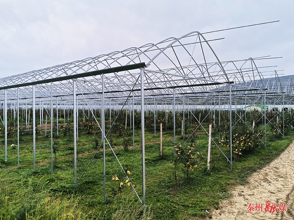 天水镇天水村的果树多防棚项目,目前26座多防棚的钢架主体结构已安装完毕,项目建成后,将通过信息技术运用,实现农业与数字化的深度融合,达到品质数字化、模式可视化、增收持续化。