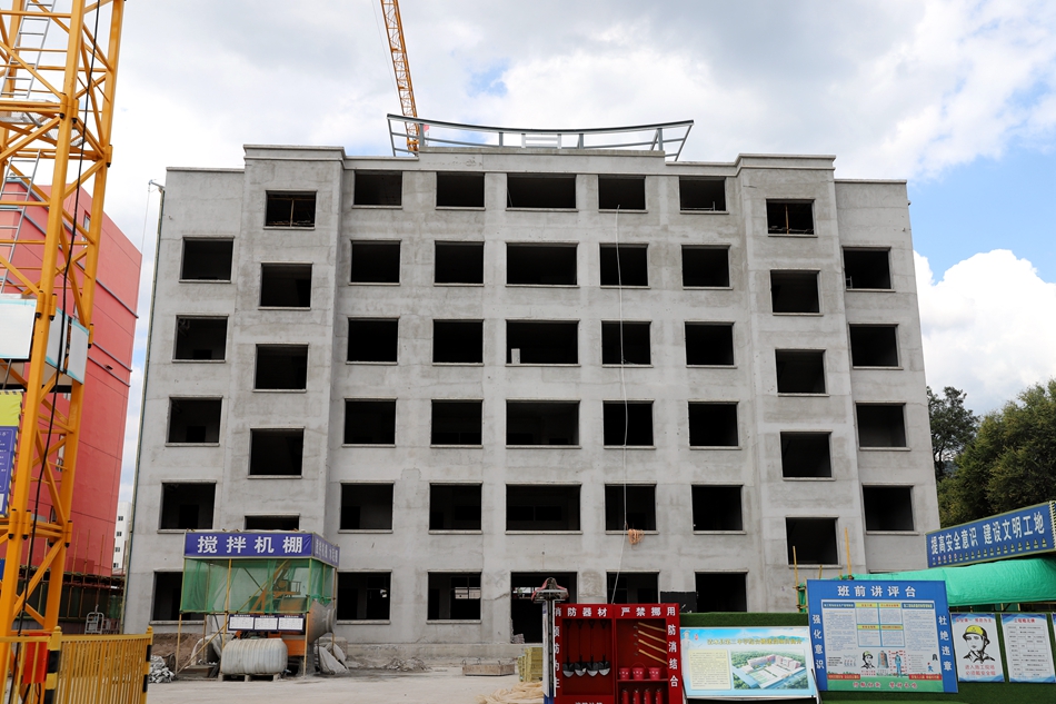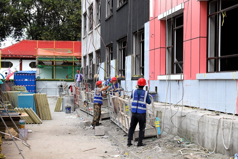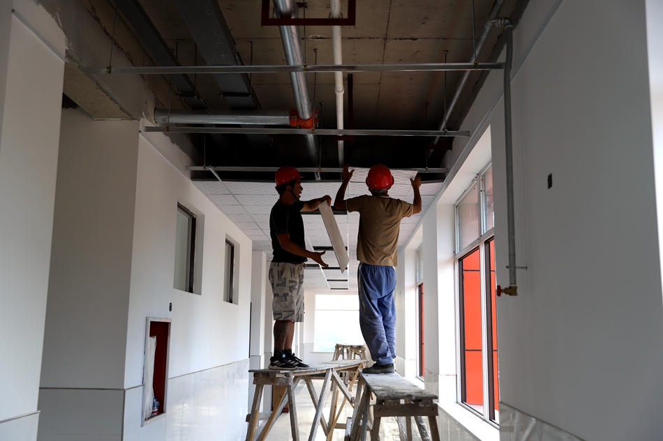 走进白沙农业中学施工现场,工人们正在进行一楼地面平整、操场及围墙的施工。白沙农业中学原有旧教学楼为楼板结构,不能满足正常教育教学需求,为彻底消除校舍安全隐患,计划重建地上五层框架结构教学楼一栋,建筑面积3236.9平方米,配套装饰工程、给排水、暖通、电气、消防、综合布线系统等。目前教学楼基本竣工,正在进行室外附属工程施工,计划9月底全面竣工交付使用。
