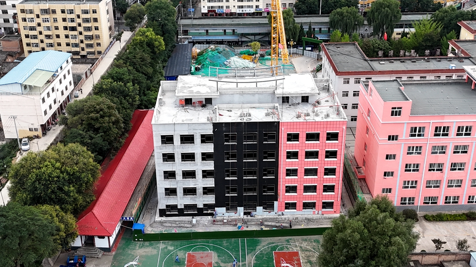 清水县三中综合楼建设项目是2024年实施的重点建设项目之一。该项目计划投资2208.23万元,新建地上五层框架结构综合楼一栋4148.63平方米,现已完成主体工程,正在进行外墙保温一体板工程施工,预计2025年5月竣工交付使用。