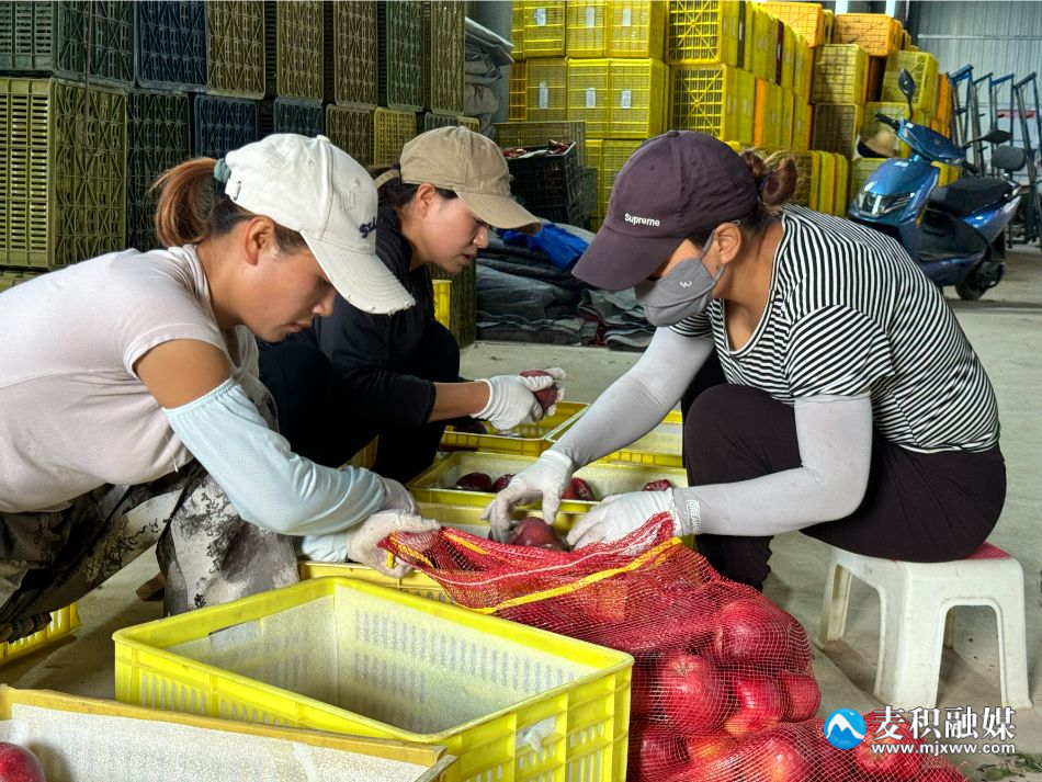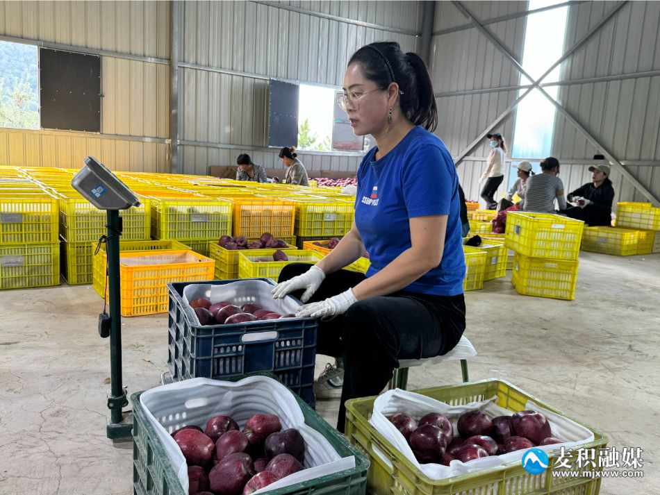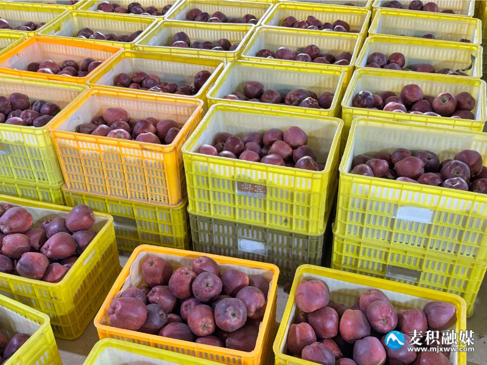 走进陶之源种植农民专业合作社的仓库,记者看到装满花牛苹果的果筐堆积如山,工作人员忙碌地穿梭其间,正在进行分拣、装箱和称重。