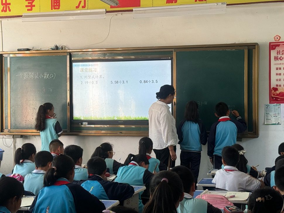 本次教研活动由中心小学教师南文慧和贾川小学支教教师马爱珍老师分别上了《一个数除以小数》第一课时和第二课时的公开课。两位教师让学生通过独立思考、自主探究、合作交流等数学活动,经历探究计算方法的过程,使学生理解除数是小数的除法是利用商不变性质将除数通过移动小数点由小数变成整数再计算。整节课,两节课都成功地处理主体与主导的关系,做教为学服务,突出体现了“以学生的发展为本”的基本理念,并和学生一起总结出按照“一划、二移、三点”三个步骤来计算除数是小数的基本原理。