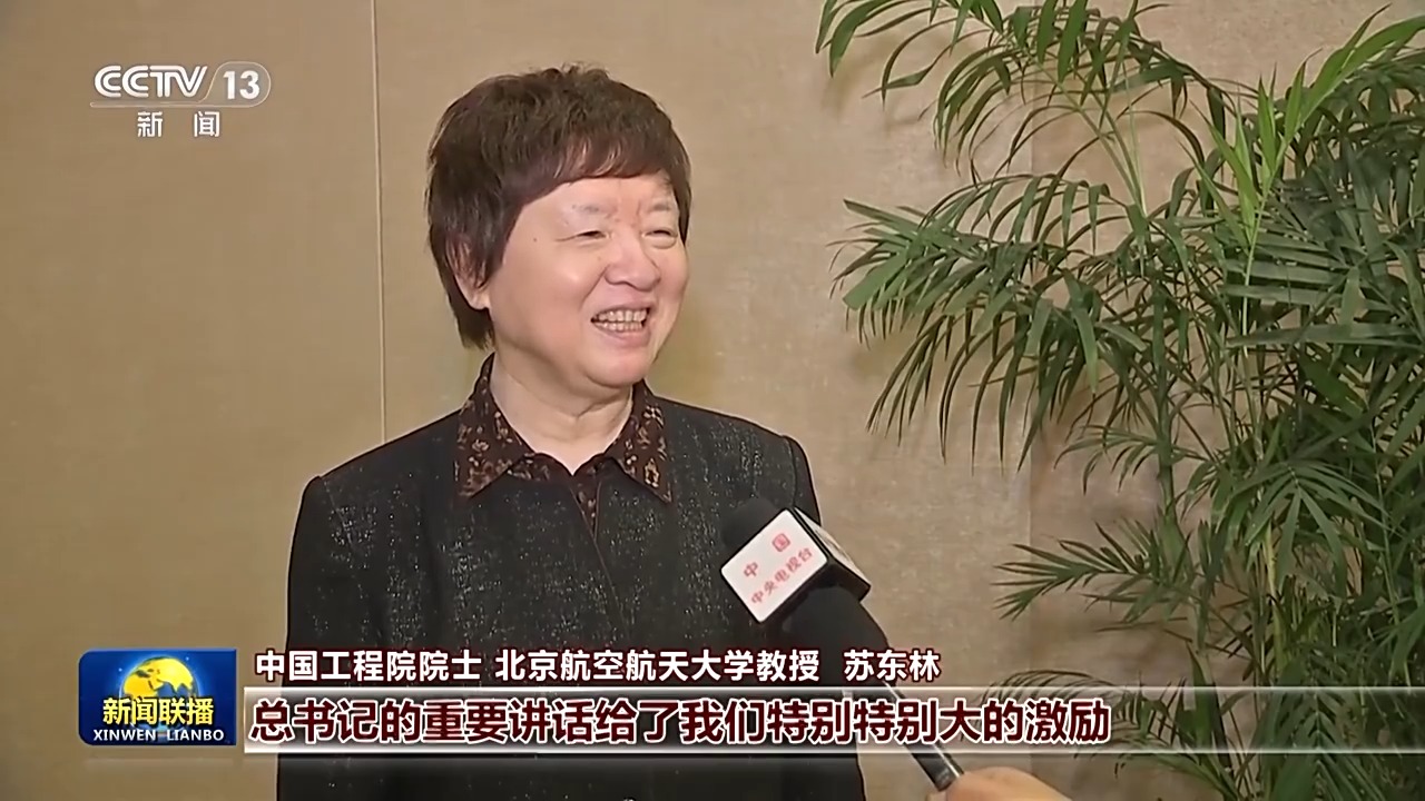 中国工程院院士 北京航空航天大学教授 苏东林:总书记的重要讲话给了我们特别特别大的激励,正是因为这个时代有这么多的英雄在为国家作贡献。时代造就了英雄,英雄也贡献了这个时代。我们一定要带领我们的老师和同学们一起向英雄学习,围绕国家重大战略,让我们的学生能扛起大梁,自觉自愿地去到国家的主战场去奉献青春,为国家立功。