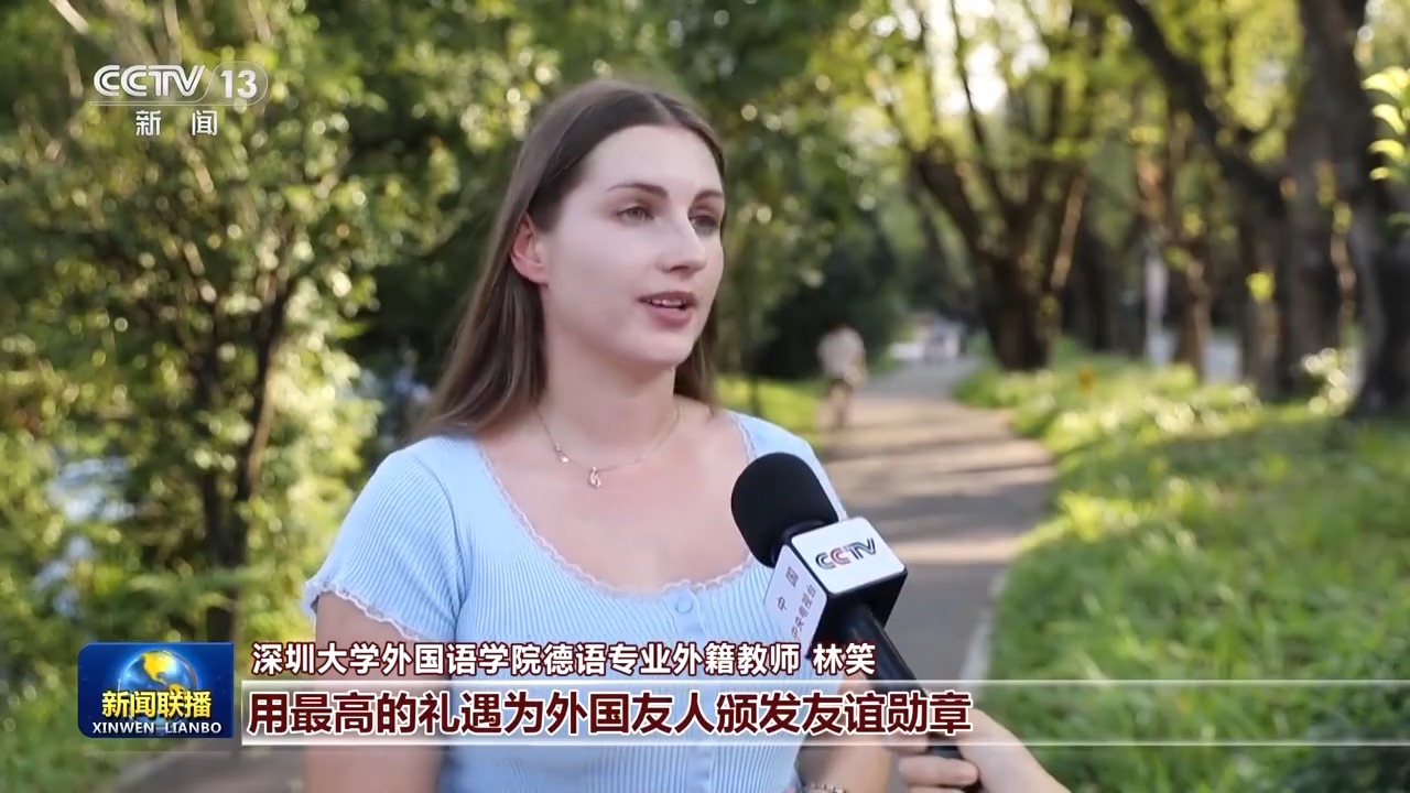 深圳大学外国语学院德语专业外籍教师 林笑:我们见证了习近平主席用最高的礼遇为外国友人颁发友谊勋章,非常激动。中国是一个开放的国家,是一个可以让你梦想成真的国家。习近平主席提出的“一带一路”倡议是一项伟大的创举,我也想通过自己的努力推进中国和各国间的人文交流,为“一带一路”倡议出一份力。