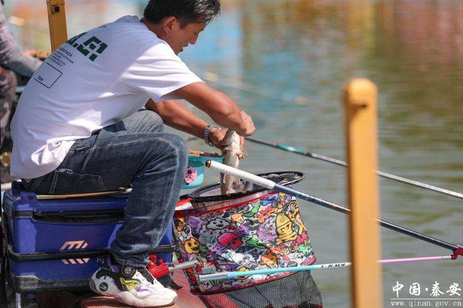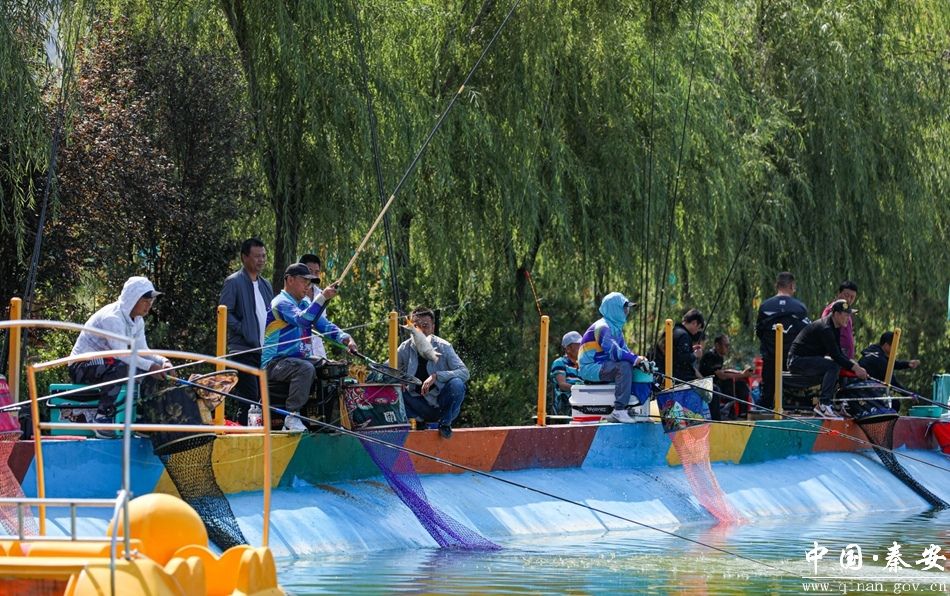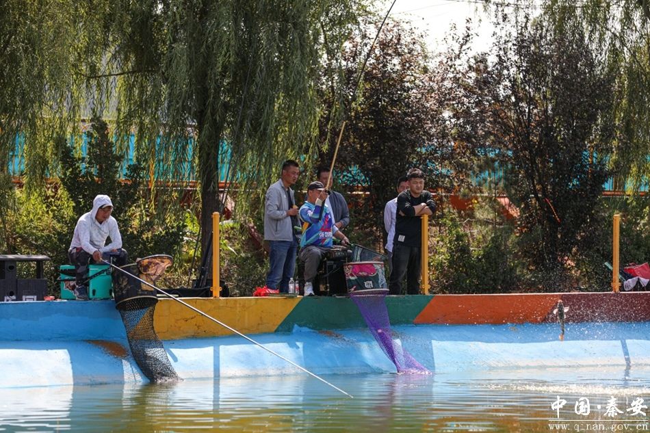 新天水讯 据秦安县融媒体中心消息 国庆假期,秋高气爽,正是垂钓的好时节。在秦安县安伏镇水上乐园垂钓基地,钓友们屏息凝神,紧盯浮漂,不放过任何一个上鱼的信号,随着时间推移,水面也泛起涟漪,场地里上鱼的欢呼声此起彼伏,钓友们纷纷提竿而起,在“动”“静”之间尽情感受垂钓的魅力。