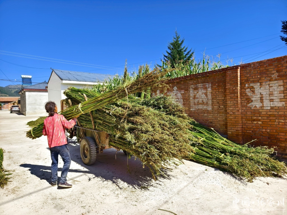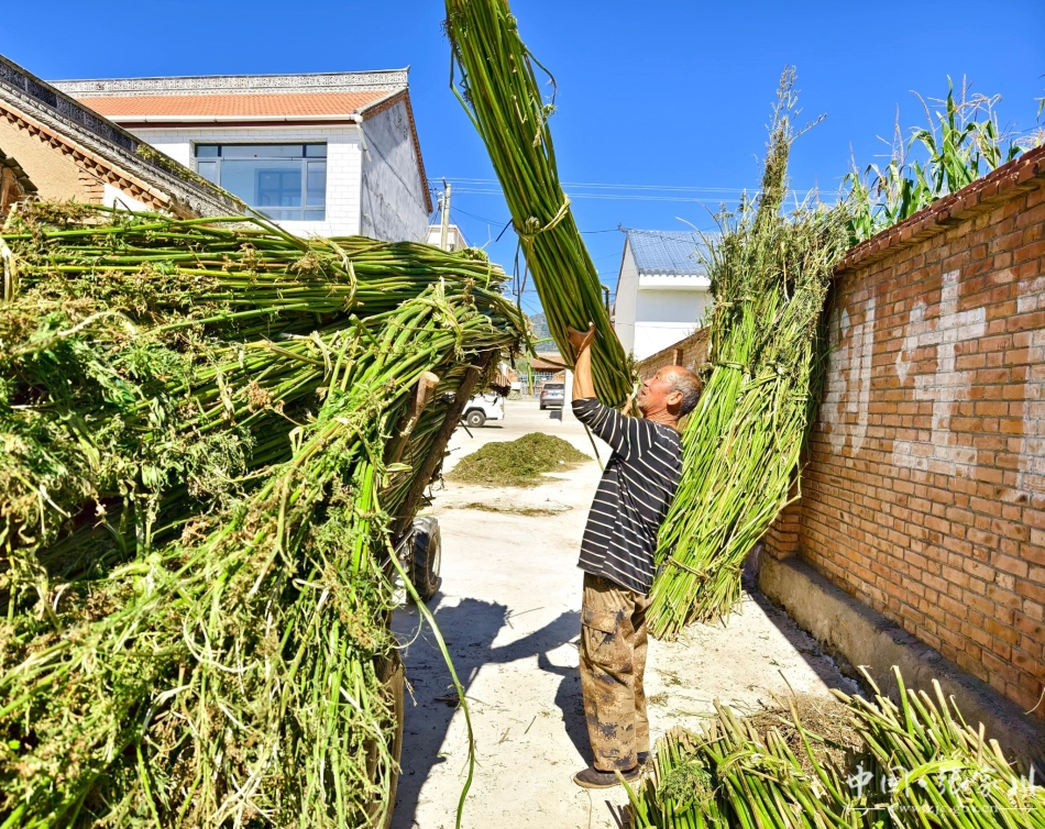 汉麻收货季节,行走在龙口村的巷巷道道,群众都忙着捋麻、晒麻,新硬化的小巷道路面平整、宽度适宜,拖拉机、三轮车都可宽松出入。纳安荣和家人正忙着将地里割回来的汉麻晾晒在自家门口。