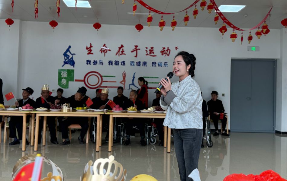 活动现场,伴随着欢快的生日歌,老人们与嘉宾一同切蛋糕、送祝福,共同庆祝这个特殊的日子。随后,一场精彩的文艺节目汇演拉开帷幕,区融媒体中心干部刘芳的独唱,区民政局职工带来的诗歌朗诵、葫芦丝独奏、三句半,以及福利院老人们带来的舞蹈等节目各具特色,赢得了观众的阵阵掌声。