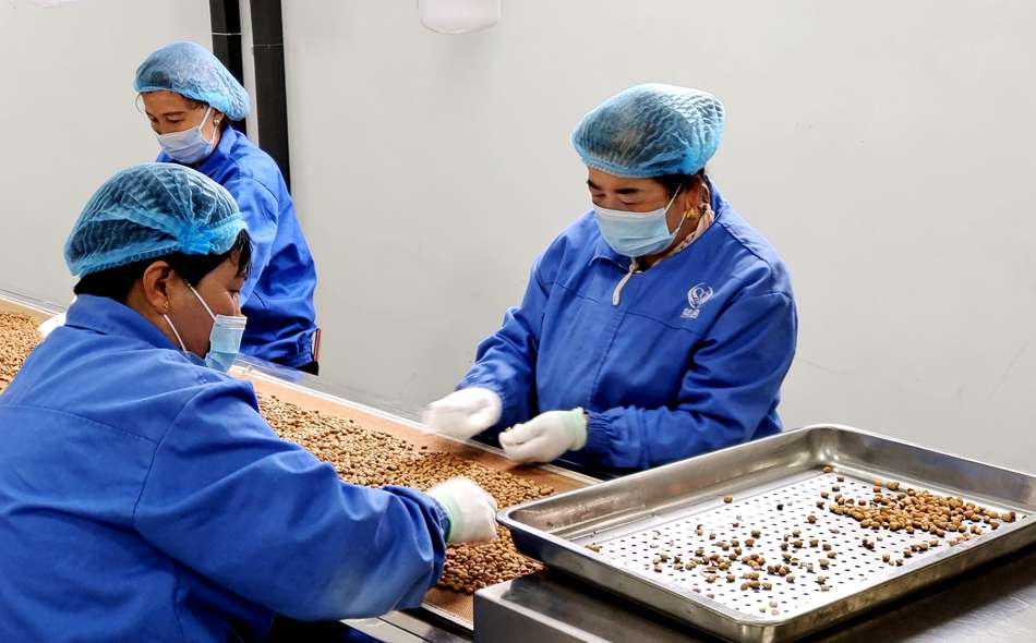 值得一提的是,天水幸福里土特产开发有限公司在发展的同时,始终不忘回馈社会。公司自建厂以来,已吸纳当地村民150人实现就业,为当地群众增收致富提供了更多机会。吴玉霞是麦积区甘泉镇人,已经在天水幸福里土特产开发有限公司工作三年了。“这里离家里近,既能挣钱也能照顾到家里,‘熊抱’松子是我们麦积区的产业,在这里干活,也希望能够贡献一份自己的力量,把我们家乡的优质农产品推销出去,让更多人吃到好吃的松子。”