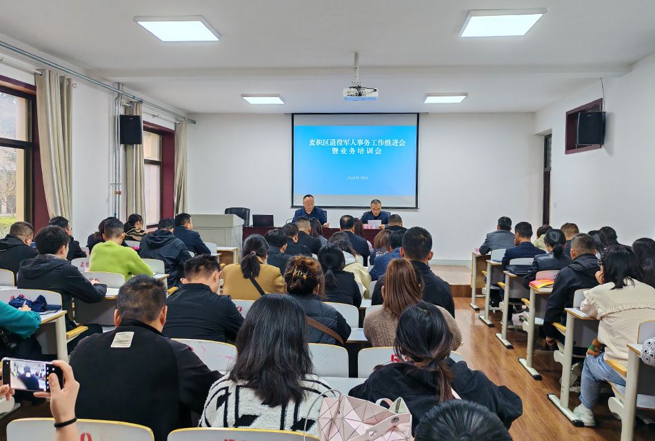 新天水讯 据麦积区融媒体中心消息 为进一步提升退役军人事务工作人员服务退役军人的能力水平,推动退役军人各项事务工作高质量发展,10月12日,麦积区退役军人事务工作推进会暨业务培训会召开。区退役军人事务局,各镇、街道退役军人服务站分管领导、站长、业务专干以及部分社区退役军人服务站站长共计70余人参加会议。