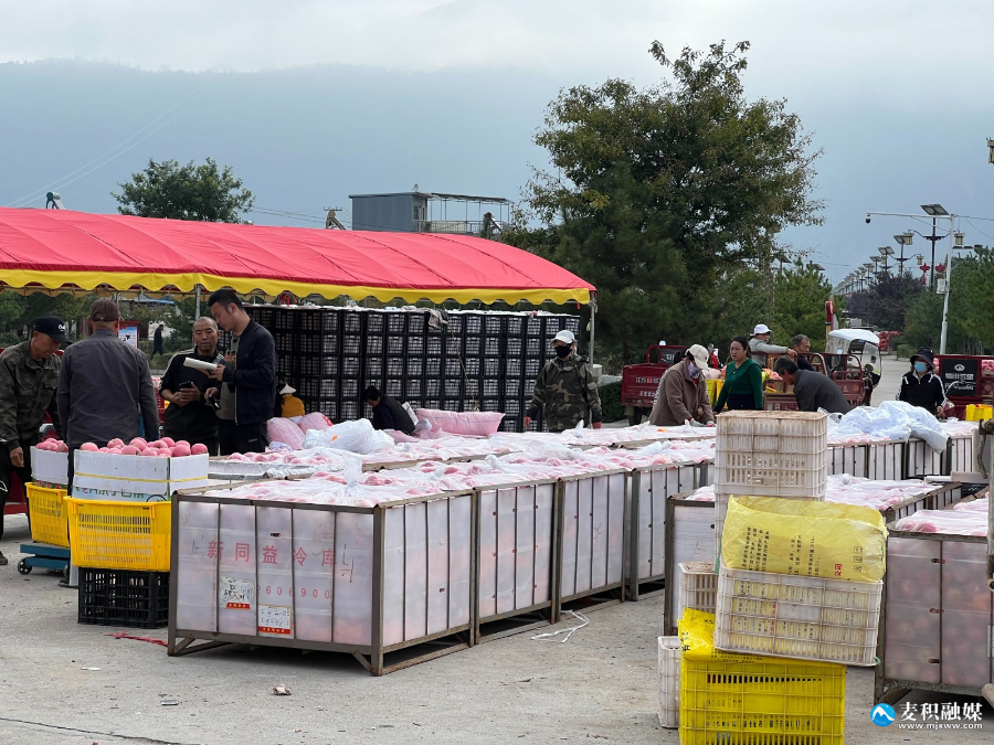 新天水讯 据麦积区融媒体中心消息 金秋十月,麦积区元龙镇迎来了富士苹果的丰收季。走进元龙镇的苹果交易市场,只见人头攒动,热闹非凡,来自全国各地的采购商们聚集于此,争相采购当地优质富士苹果。