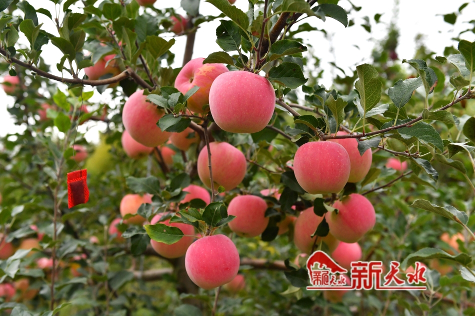 2023年全镇苹果种植户有3967户,占全镇农户78%。目前,全镇果园总面积达到37954亩、挂果面积达33750亩,产量达7400万公斤,产值约3.4亿元,人均果品纯收入达11000元。“郭川苹果”成了群众的“摇钱树”“幸福树”。( 新天水记者周文涛 景春燕 摄)