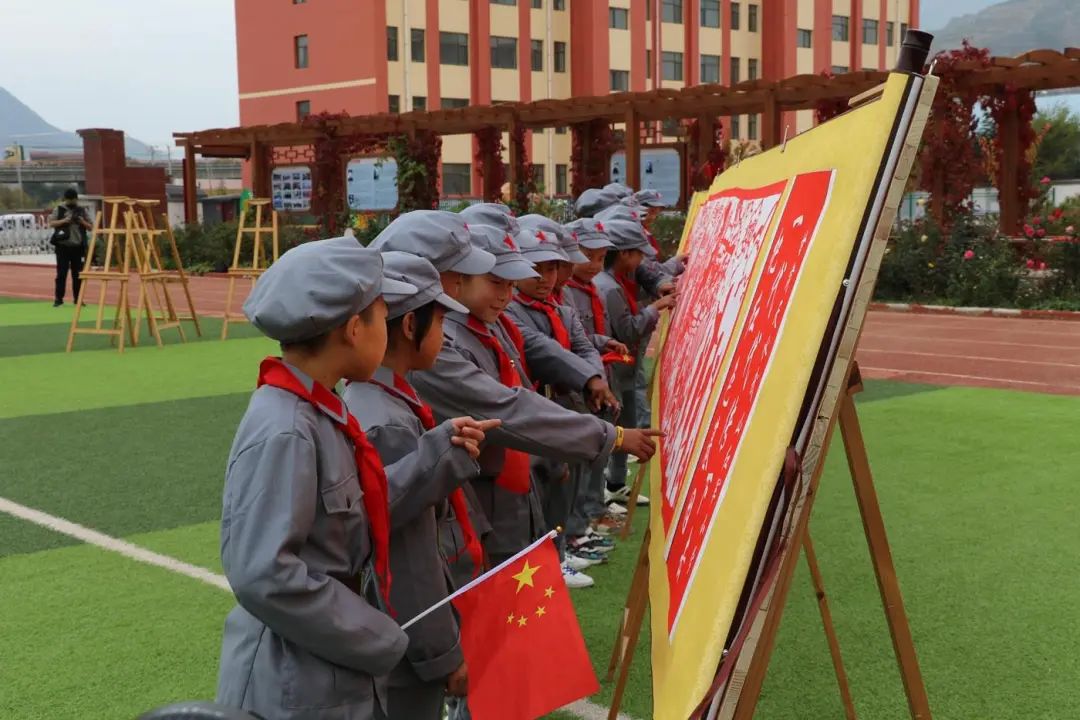 新天水讯 据武山县融媒体中心消息 国庆前夕,一场红色文化展在位于武山县鸳鸯镇的武山红军小学展出,其中由师生共同创作的《党的光辉历程》《武山发展历程》两幅剪纸长卷格外引人注意。这种用非遗剪纸表现红色文化的方式,绽放出了文化传承绚烂之花。