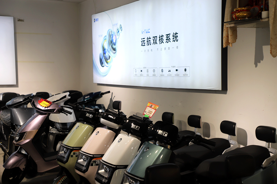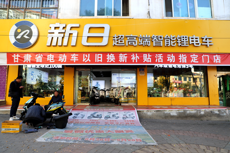 清水县新日电动车门店负责人程清江说,“最近依托政府推出的以旧换新政策,极大地促进了本店电动车的销量,我们也借助政府的这一红利政策,同时推出了店内优惠政策,旧电动车、旧摩托车不限品牌统一折价500-1500元,同时购新车享受‘三包’服务,让顾客买得放心、买得舒心。”