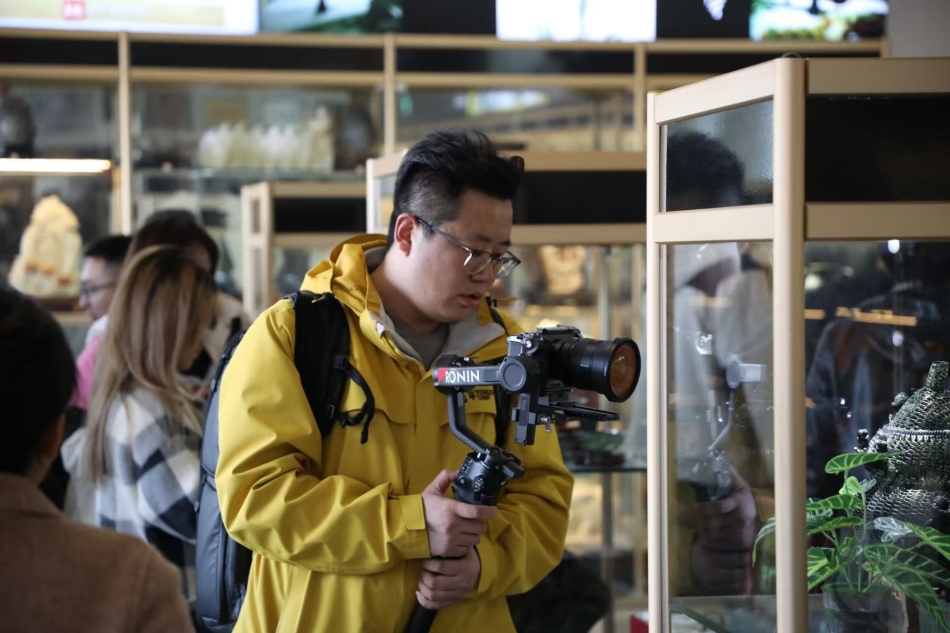 在武山鸳鸯玉雕工坊,网红大咖参观了鸳鸯玉雕加工制作过程,并对鸳鸯玉制作而成的精美展品进行了全方位拍摄宣传。