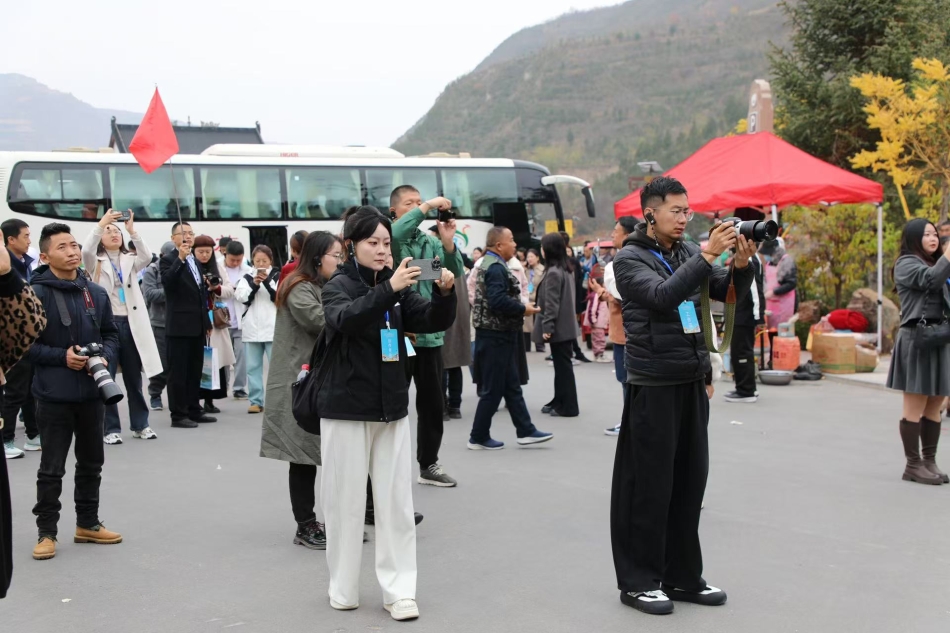 新天水讯 据武山县融媒体中心消息 11月10日,参加2024年甘肃文旅网红创意大会的100多位网红大咖走进武山水帘洞景区、武山鸳鸯玉雕工坊开展全媒体探访,用流量宣传推介武山。