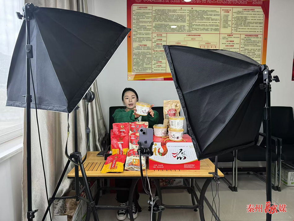 “品类就是我们桌子上的袋装呱呱、桶装呱呱、礼盒装的呱呱,还有手擀粉、麻辣烫料包,一共有五样,播完后统一发货。”盈麦香食品有限责任公司电商部主播高纬纬说。