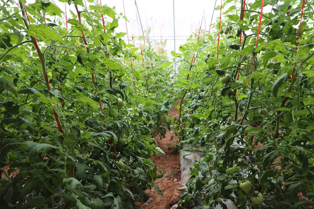 走进改造后的大棚,入目之处皆是生机盎然。一垄垄西红柿植株整齐排列,仿佛一片绿色的海洋在微风中轻轻摇曳;一串串西红柿沉甸甸地挂满枝头,那大小各异的果实恰似一颗颗晶莹剔透的宝石,在阳光下散发着诱人的光泽。