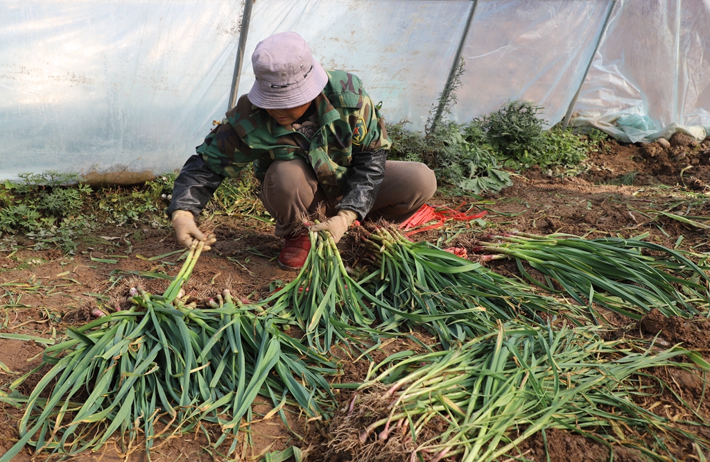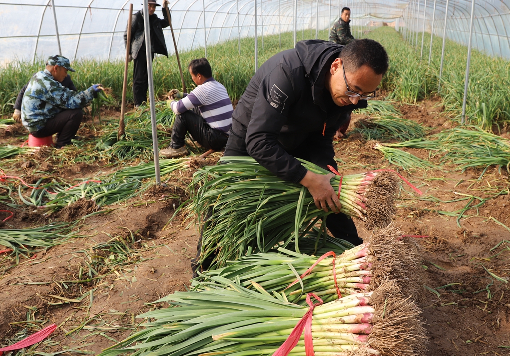 “飞地”抱团,武山县四门镇集体经济蒜苗迎丰收