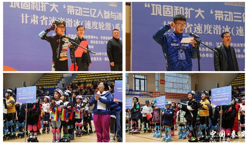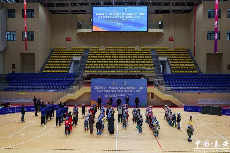 新天水讯 据秦安县融媒体中心消息 11月23日,“巩固和扩大‘带动三亿人参与冰雪运动’成果”甘肃省速度滑冰(速度轮滑)系列赛(天水站)在秦安县体育馆开赛。甘肃省冬季运动管理中心副主任吴建军,天水市体育局副局长陆幼晨,秦安县政府副县长章春军参加活动。