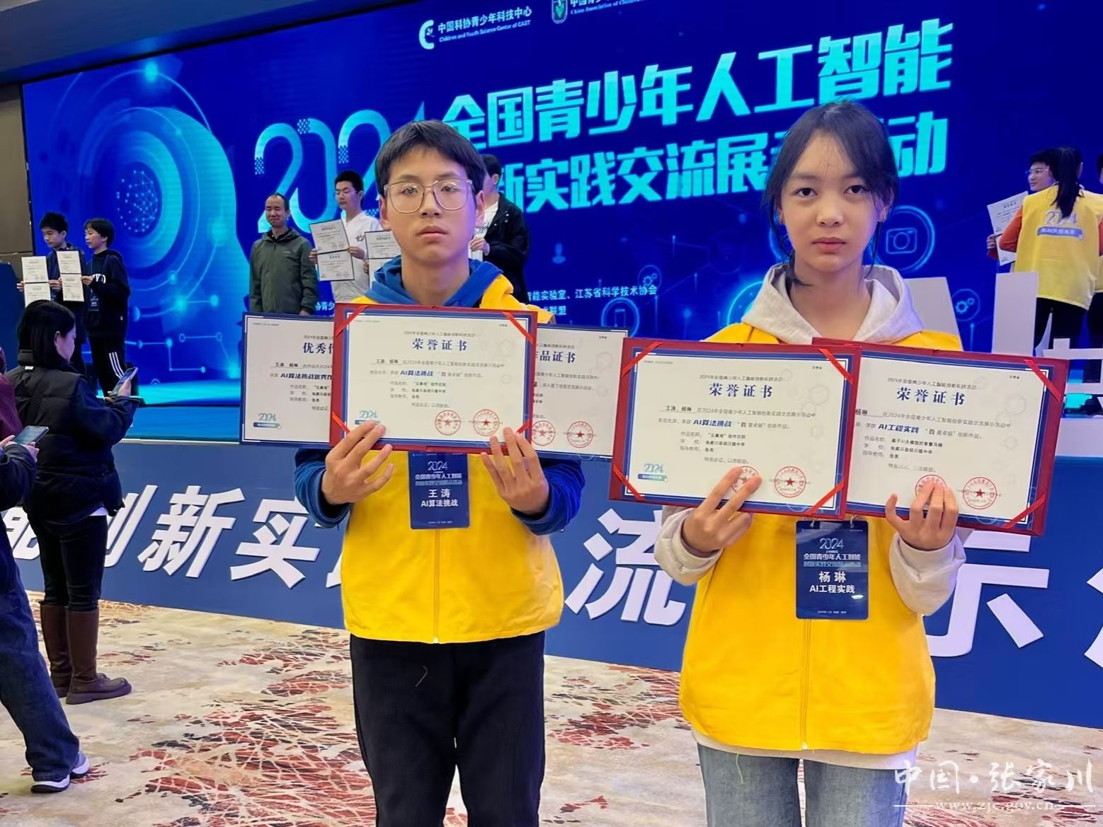 新天水讯 据张家川县融媒体中心消息 11月22日至25日,由中国科协青少年科技中心、中国青少年科技教育工作者协会、上海人工智能实验室和江苏省科学技术协会联合主办的主题为“与AI共创未来”的2024年全国青少年人工智能创新实践交流展示活动,在江苏省南京市举。张家川县胡川镇中学的王涛和杨琳以卓越的表现和创新精神,荣获“AI算法挑战”和“AI工程实践”两项“四星卓越”创作作品称号。
