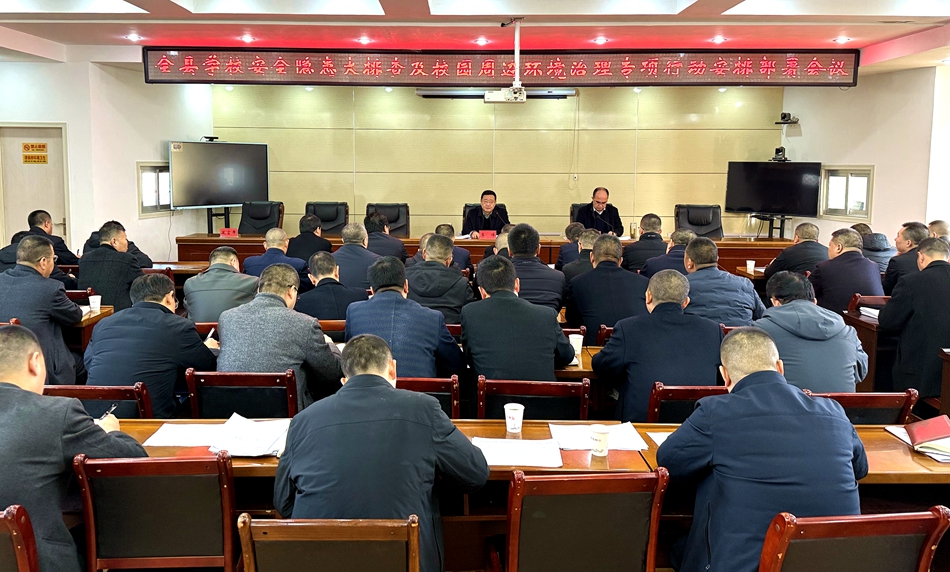 会议强调,做好学校安全稳定工作,事关党和国家事业长远发展,事关全县社会大局和谐稳定,事关全县教育高质量发展。教育部门和各学校以“时时放心不下”的责任感和使命感,以“一失万无”的警醒、“万无一失”的细致,主动扛起“促教育发展、保学校平安”的政治责任,以钉钉子精神抓严抓实学校安全教育管理,织牢织密学生成长防护网,坚决守住校园安全底线,为教育事业高质量发展创造良好环境。要抓好安全隐患排查整改,抓好师生安全教育,抓好校园周边环境综合整治,坚决筑牢学校师生安全网。要结合群众身边不正之风和腐败问题集中整治工作,全力保障营养改善计划高效实施,确保师生舌尖上的安全。要持续巩固“双减”成果,统筹谋划城乡教育发展布局,科学优化配置教育资源,持续深化教育评价改革,加强高素质教师队伍建设,全力推动教育综合改革走深走实。