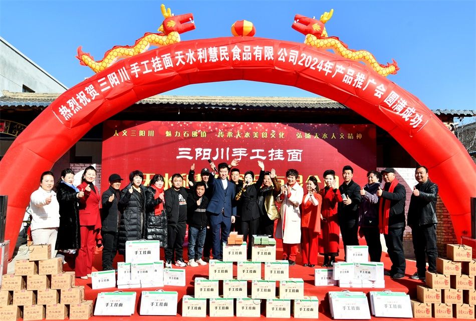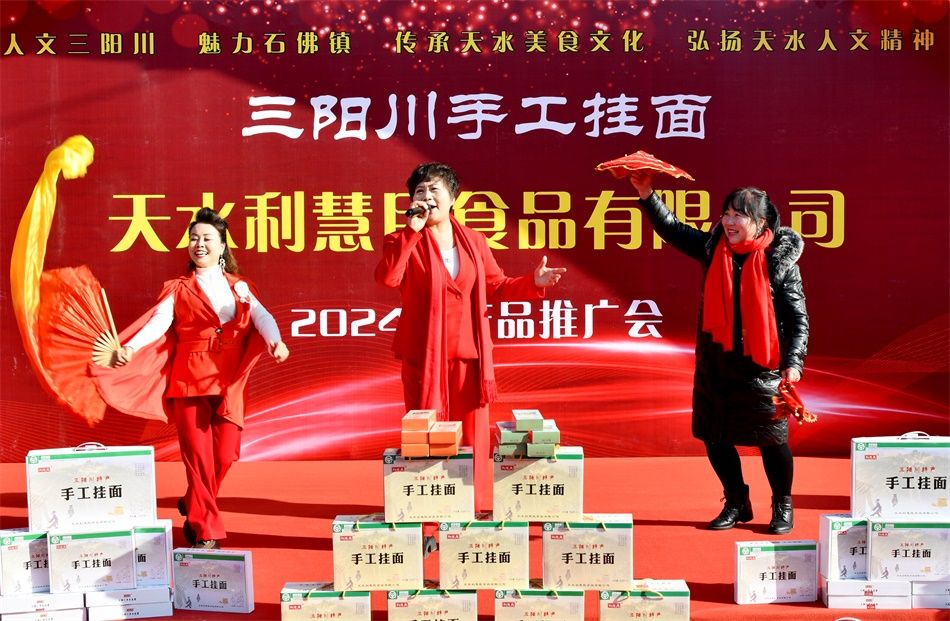 新天水讯 据麦积区融媒体中心消息 初冬时节,麦积区三阳川阳光明媚,微风拂面,一场别开生面的手工挂面产品推广会在石佛镇杨家庄村的天水利慧民食品有限公司院内举行。来自天水市的30位网红齐聚一堂,各展才艺,为“利慧民”手工挂面倾情代言,通过直播带货的独特形式,为乡村振兴注入新活力。