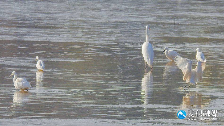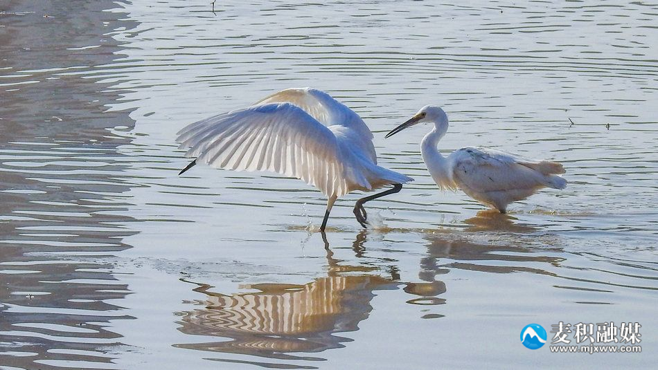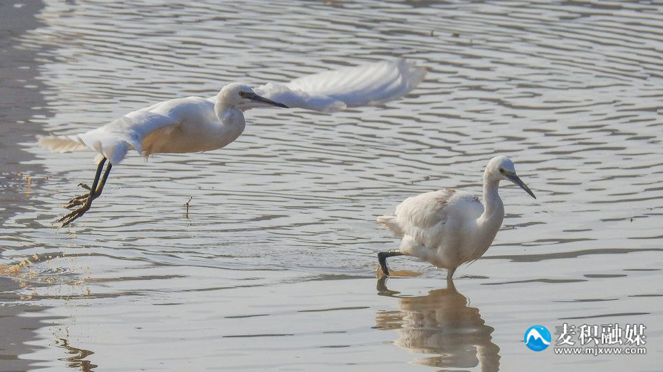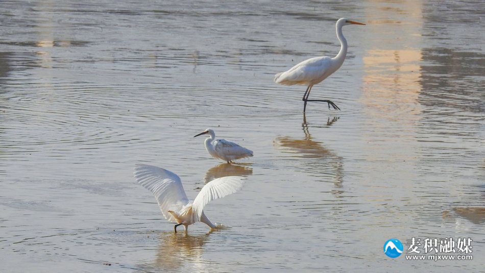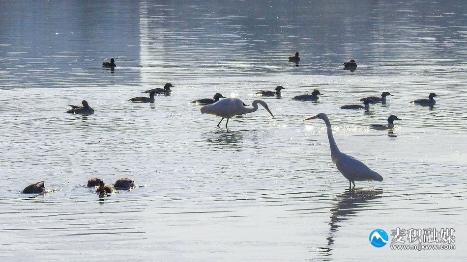 新天水讯 据麦积区融媒体中心消息 在冬日暖阳的照耀下,麦积区翠湖迎来了一群特殊的客人。数只优雅的白鹭时而在空中蹁跹起舞,时而在水中低头觅食,与野鸭们嬉戏玩耍,共同编织出一幅生动而美丽的冬日生态画卷。(特约记者陈治平)