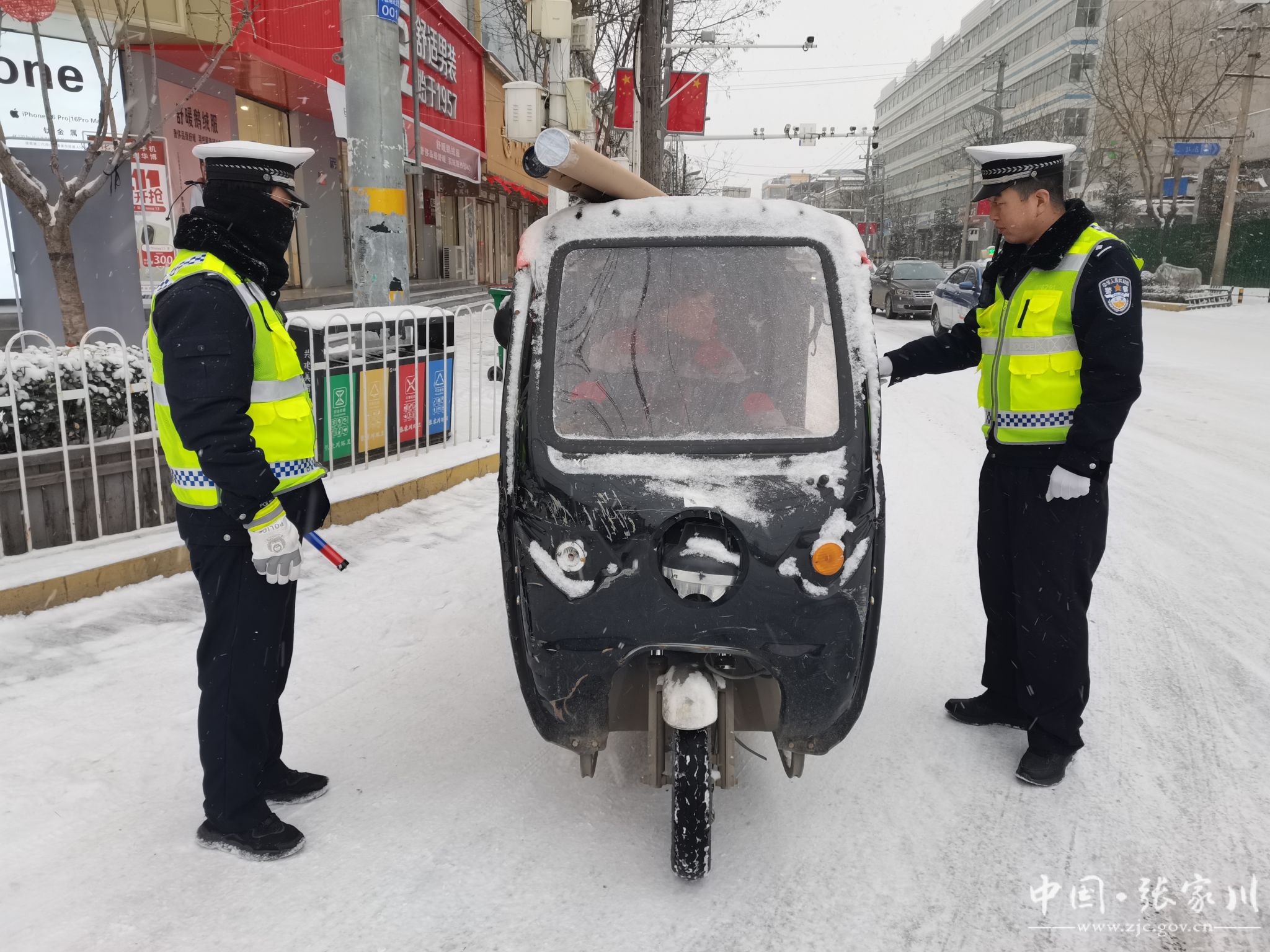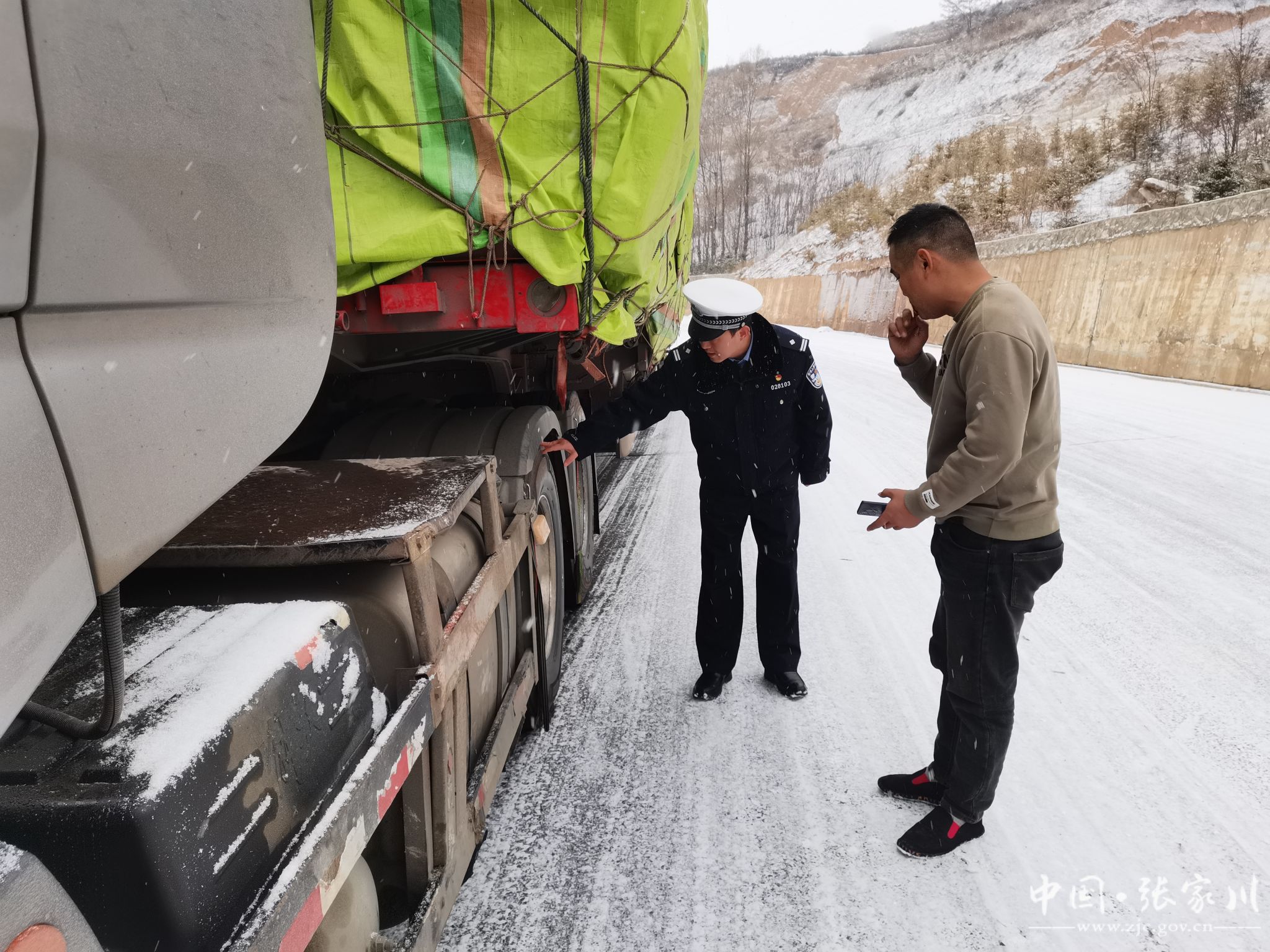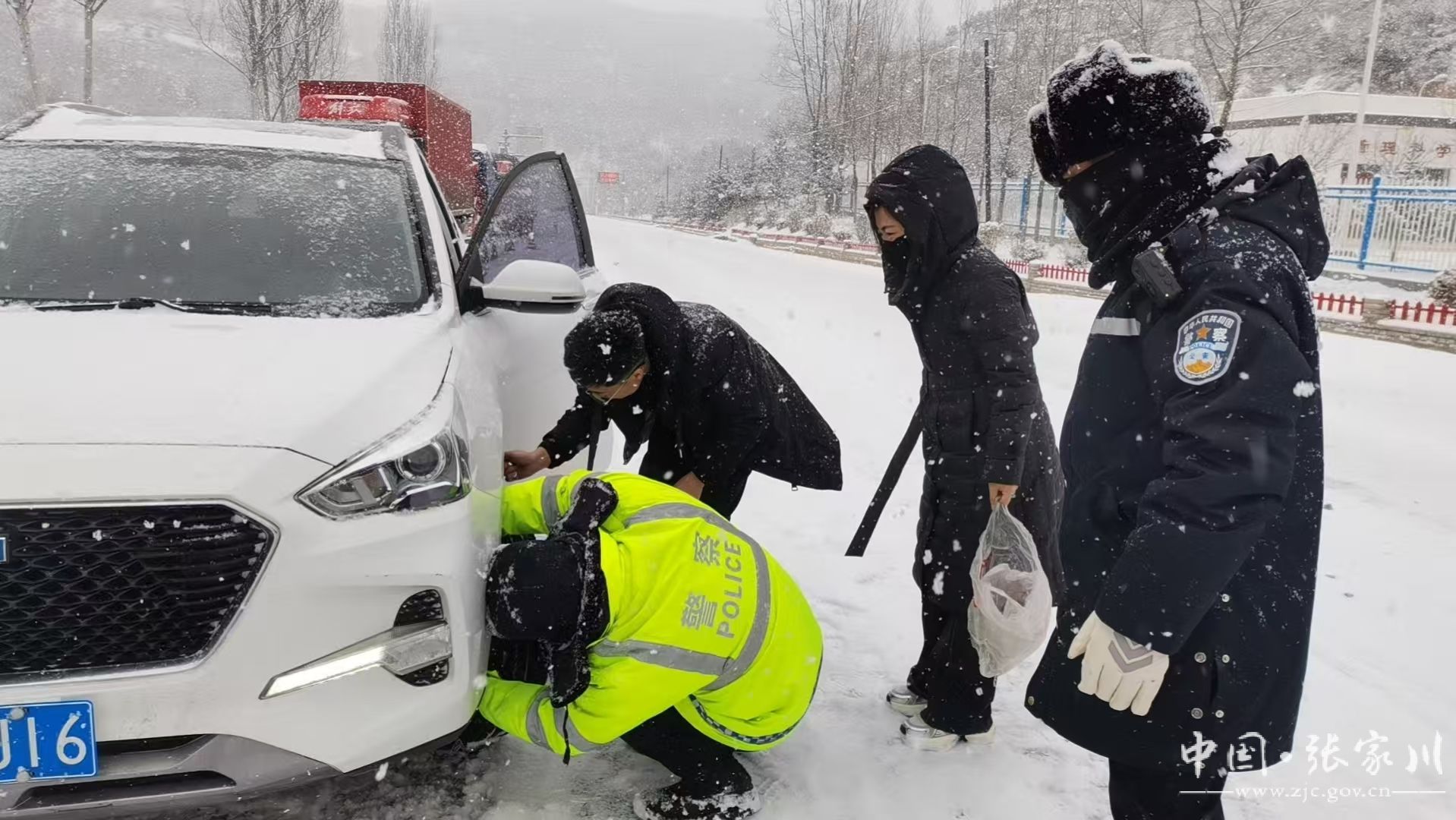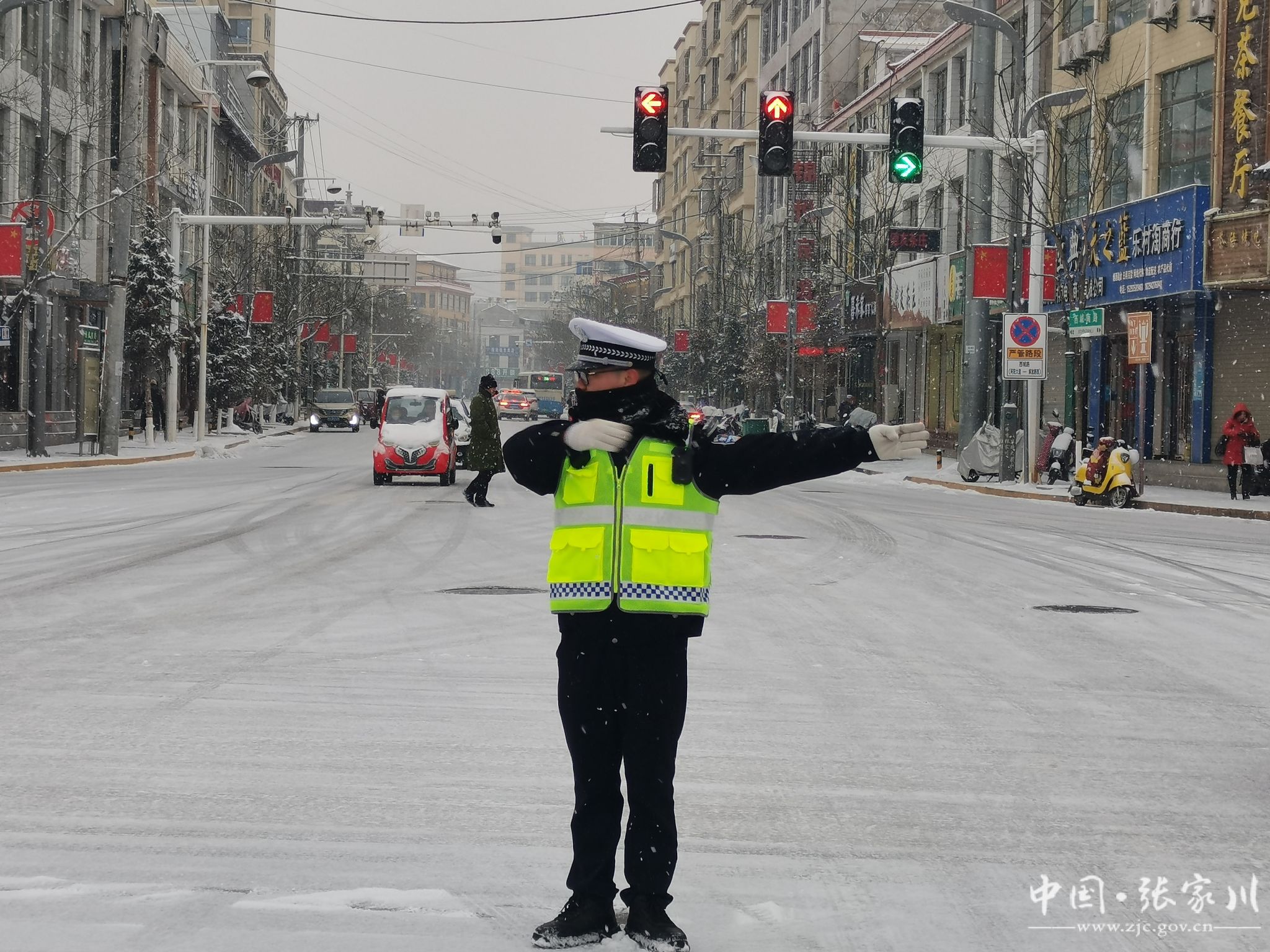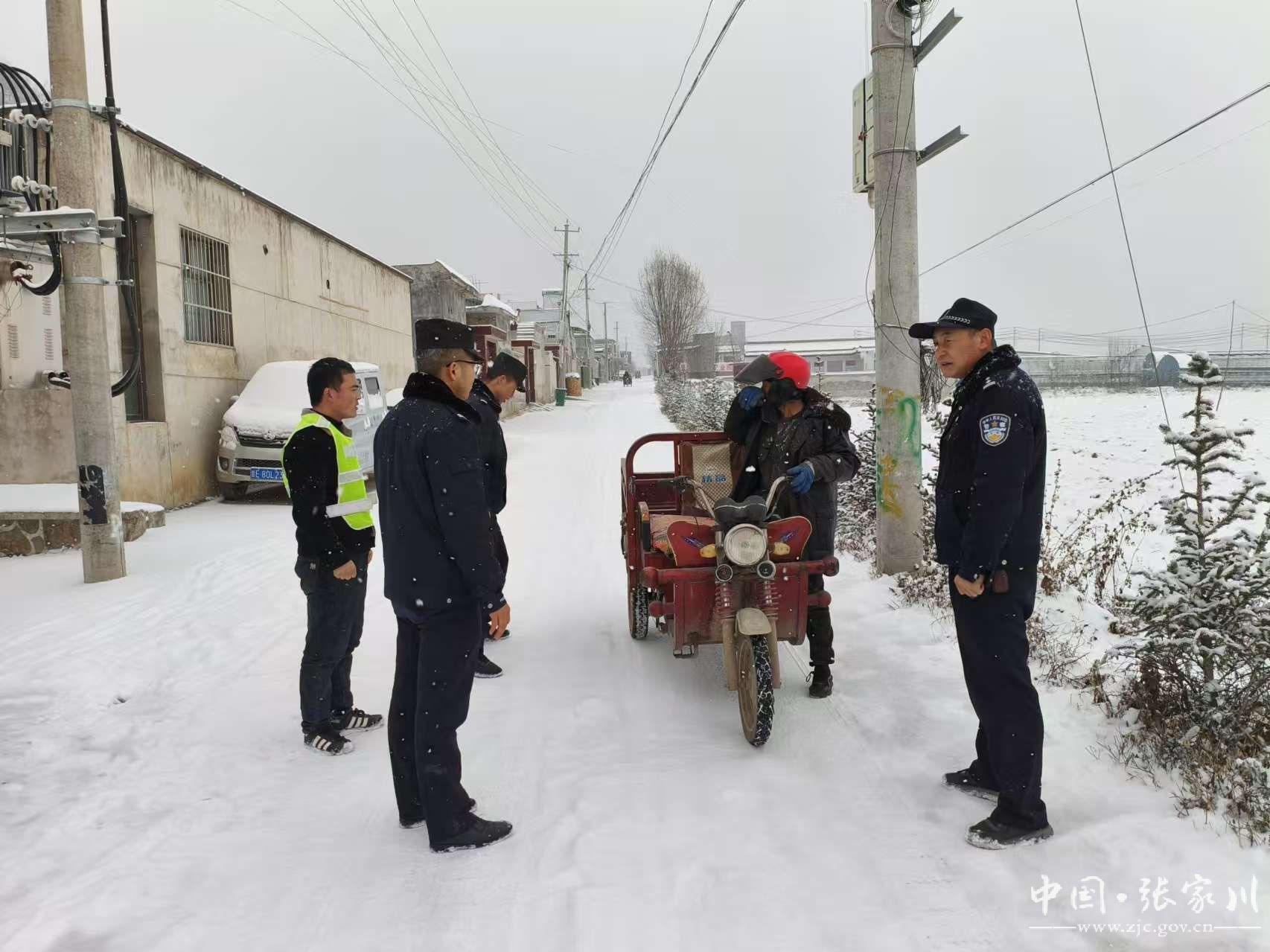 新天水讯 据张家川县融媒体中心消息 受强冷空气影响,12月12日,张家川县迎来持续强降雪恶劣天气。针对本次降雪降温天气,张家川县公安局交警大队以雪为令、快速反应,迅速启动恶劣天气应急预案,采取有力措施,加强路面巡逻管控力度,及时发布安全出行提示、疏导交通、排查道路交通安全隐患,全力为群众安全出行保驾护航。