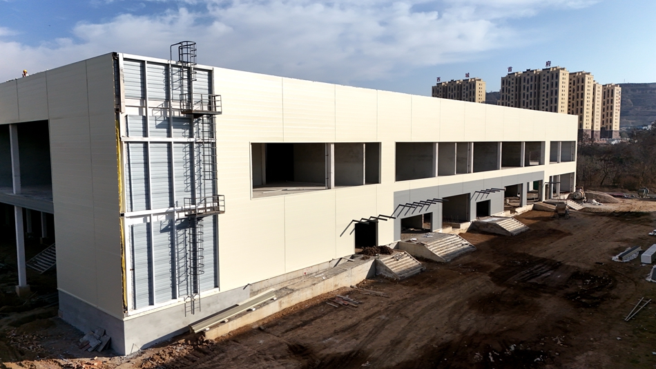 “项目已完成桩基工程和主体钢柱钢梁安装,目前正在实施外墙板和内墙板安装作业。下一步,项目将进行给排水、暖气通风、强弱电等安装作业。”清水县市场建设中心科员罗瑞军说。