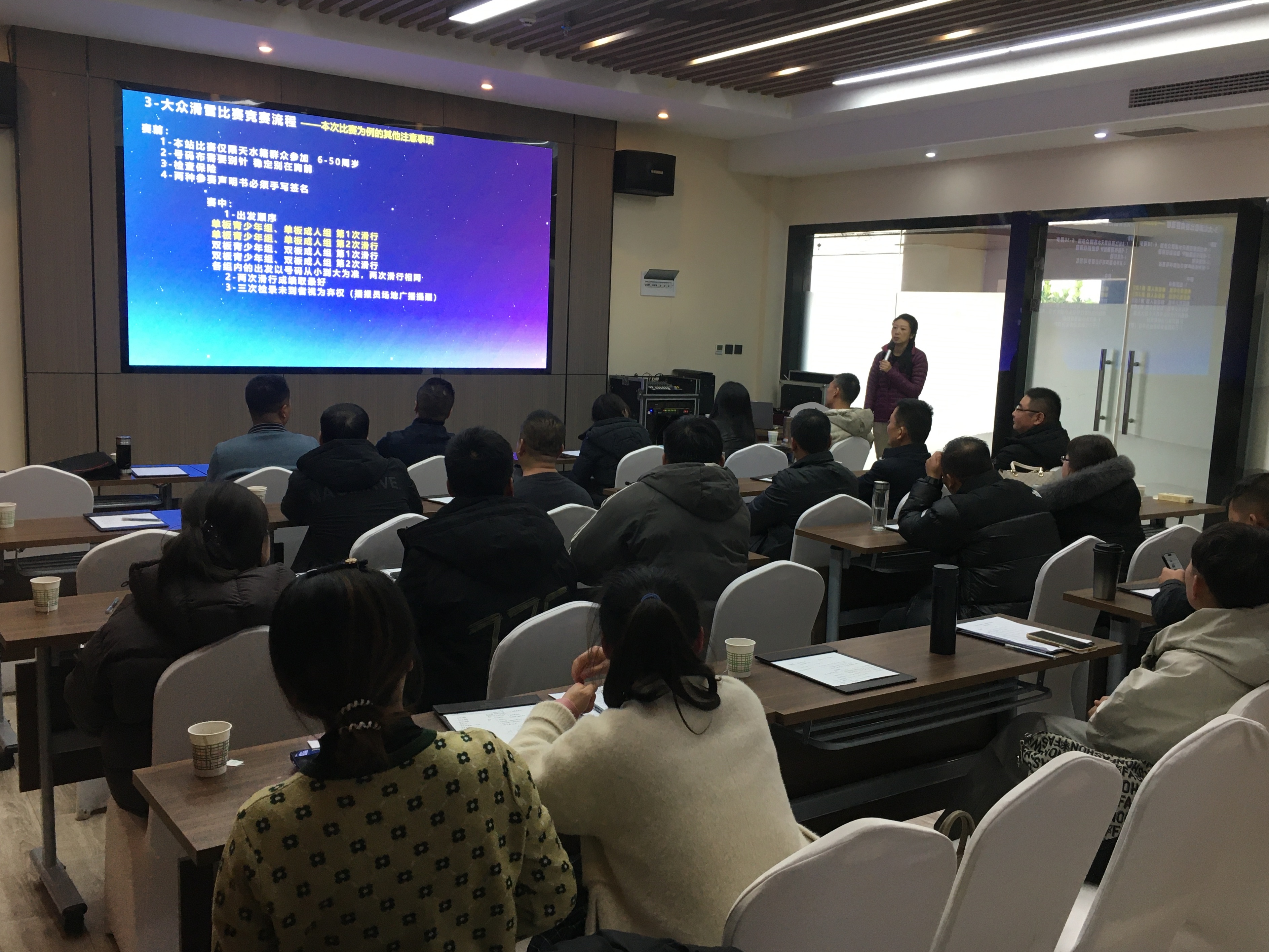 此次培训班由甘肃省冰雪运动协会理事王潇授课,培训内容包括高山滑雪比赛规则、裁判技巧、案例分析、裁判员岗位职责以及竞赛器材进行讲解,并在青鹃山滑雪场开展实训。