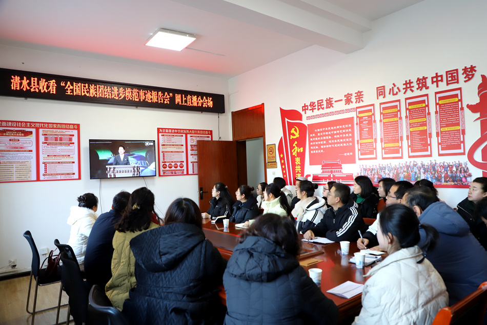 新天水讯 据清水县融媒体中心消息 12月27日下午,清水县委统战部组织已命名示范单位、教育基地分管领导集中观看全国民族团结进步模范事迹报告会直播视频。