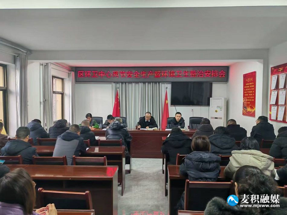 新天水讯 据麦积区融媒体中心消息 12月31日,区环卫中心召开两节安全生产暨环境卫生整治安排会。班子成员、机关全体干部职工、欣顺公司、卓旭公司、京环作业中心负责人及中层以上管理人员参加会议。