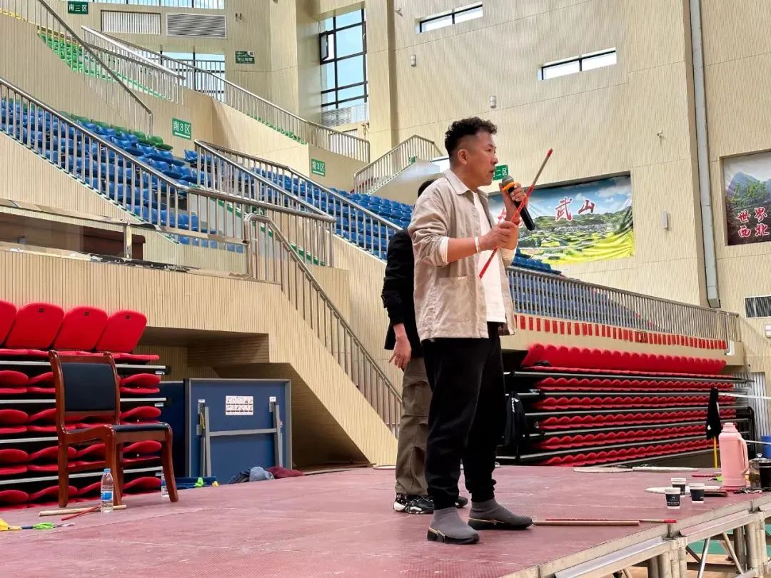 2024年五一期间,一直想创作武山旋鼓舞作品的付泓,相约音乐创作老师刘宗和深圳的舞蹈老师曼淑、湖南的舞蹈编导杨谨平老师走进武山采风,历时三天,他们先后采访了武山旋鼓舞国家级传承人戴三海、礤石川旋鼓者,了解了羊皮鼓的渊源和现状,独特的地理环境造就了武山渭河南北生活的差异,旋鼓舞“南文北武”的鲜明风格,一文一武的个性化表达形成了羊皮鼓独有的魅力。