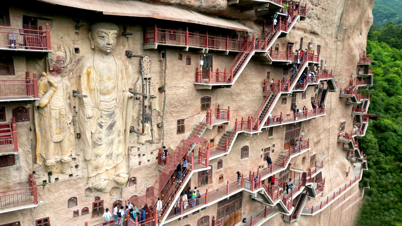 新的一年到来之际,习近平主席发表二〇二五年新年贺词,描绘宏伟愿景、饱含殷切期望。贺词中提到“麦积山石窟‘东方微笑’跨越千年”。作为我国四大石窟之一,位于甘肃省天水市麦积区的麦积山石窟始建于十六国后秦时期,历经十余个朝代的开凿和修缮,现存221个窟龛,存留泥塑及石雕造像3938件10632身,壁画1000余平方米。2014年,麦积山石窟作为“丝绸之路:长安—天山廊道的路网”中的遗址点,被列入《世界遗产名录》。