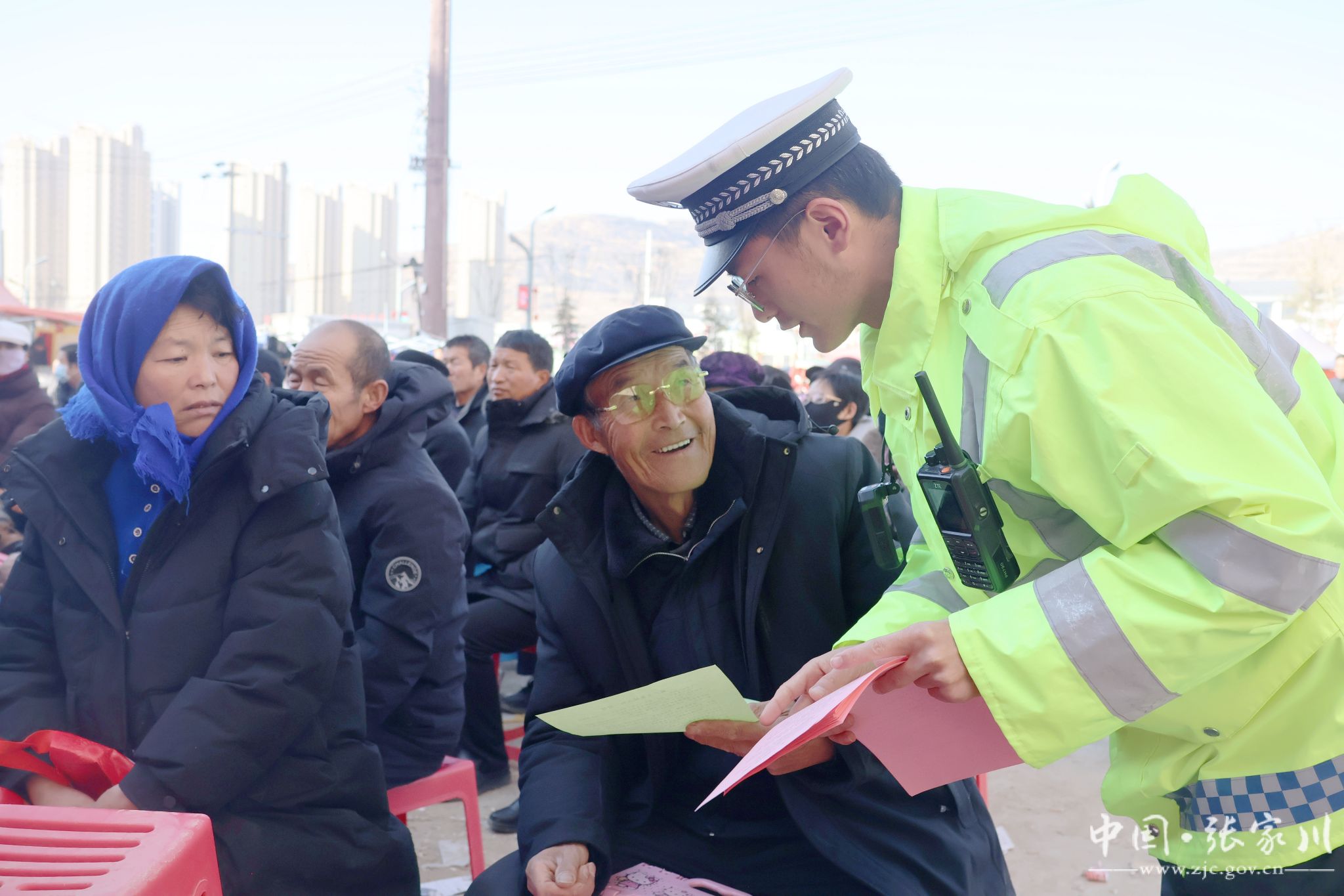 新天水讯 据张家川县融媒体中心消息 为切实增强农村道路交通安全管理工作,提高农村群众交通安全意识,1月8日,张家川县公安局交警大队组织民辅警来到易德德广场庆强惠民专场演出现场,利用唱戏之际,开展“美丽乡村行”交通安全巡回宣讲活动。