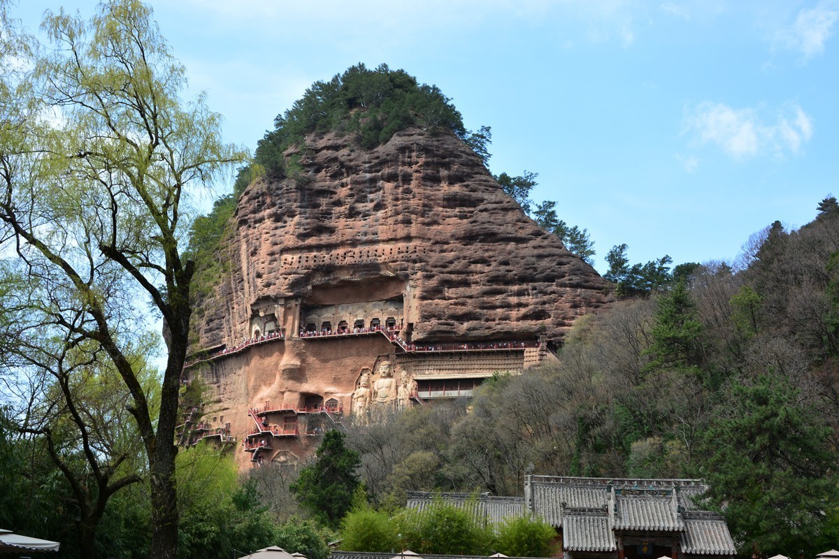 麦积山是小陇山中的一座孤峰,高142米,远看像一个麦垛屹立在苍翠葱茏之中,这就是“麦积山”名称的由来。这座始建于十六国后秦时期的石窟,经历代王朝耗费大量资财和工匠的精雕细琢,在悬崖峭壁上架设层层凌空栈道开凿和修缮,留存下窟龛221个,各类造像3938件10632身,绘制出1000余平方米的壁画,终于造就出这座被誉为中国四大石窟之一的“东方雕塑陈列馆”。