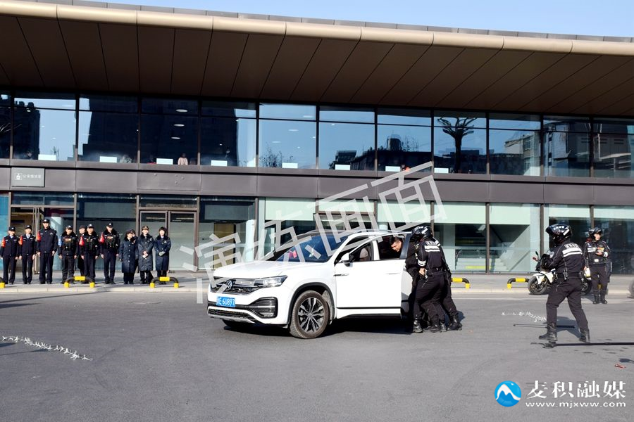 新天水讯 据麦积区融媒体中心消息 1月14日,春运首日,为提升面对突发暴恐事件的应急处置能力,确保旅客出行安全与车站秩序稳定,天水市公安局麦积分局反恐大队、巡警大队、道南派出所联合天水站派出所、城市管理综合行政执法局等相关单位,在天水火车站站前广场组织开展了一场实战化防车辆冲撞演练。