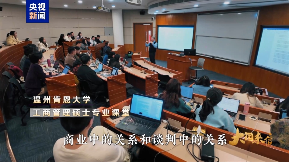 温州肯恩大学商务与公共关系学院副教授 罗布·马杰里森:去年春天,有一批美国学生来这里学习。我们对本地企业展开了案例研究。我想美国学生本以为会看到的是那种50年前工厂的样子,那种非常古老传统的工厂,但我们参观了非常先进的电子零部件制造企业。这些企业非常现代化、非常智能化,美国学生对这一切感到惊叹,这改变了他们对中国的看法。