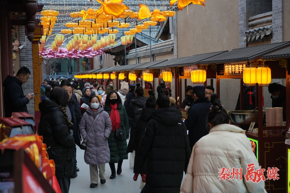 最是年关热闹处,烟火美食撩人心。为了营造浓厚新年氛围,除了特色美食,“秦州食光”美食一条街内更是挂满了喜庆的灯笼、造型别致的装饰,整条街区古色古香,让人流连忘返。