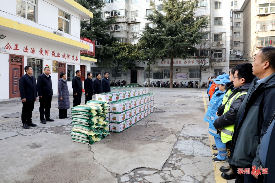 在秦州区环卫中心、城市管理局,康泰来、王志成看望慰问了春节期间坚守一线的环卫工人和干部职工,向节日期间仍坚守工作岗位的同志们致以诚挚问候和新春祝福,并表示,春节即将到来,城市管理责任重大,希望大家能继续发扬艰苦奋斗、爱岗敬业、无私奉献的优良传统,用勤劳双手守护城市整洁美丽,用热情服务传递群众生活温暖,不断提升城市品质,把我们的城市管理好、服务好,确保全市人民群众度过温暖平安欢乐祥和的春节。