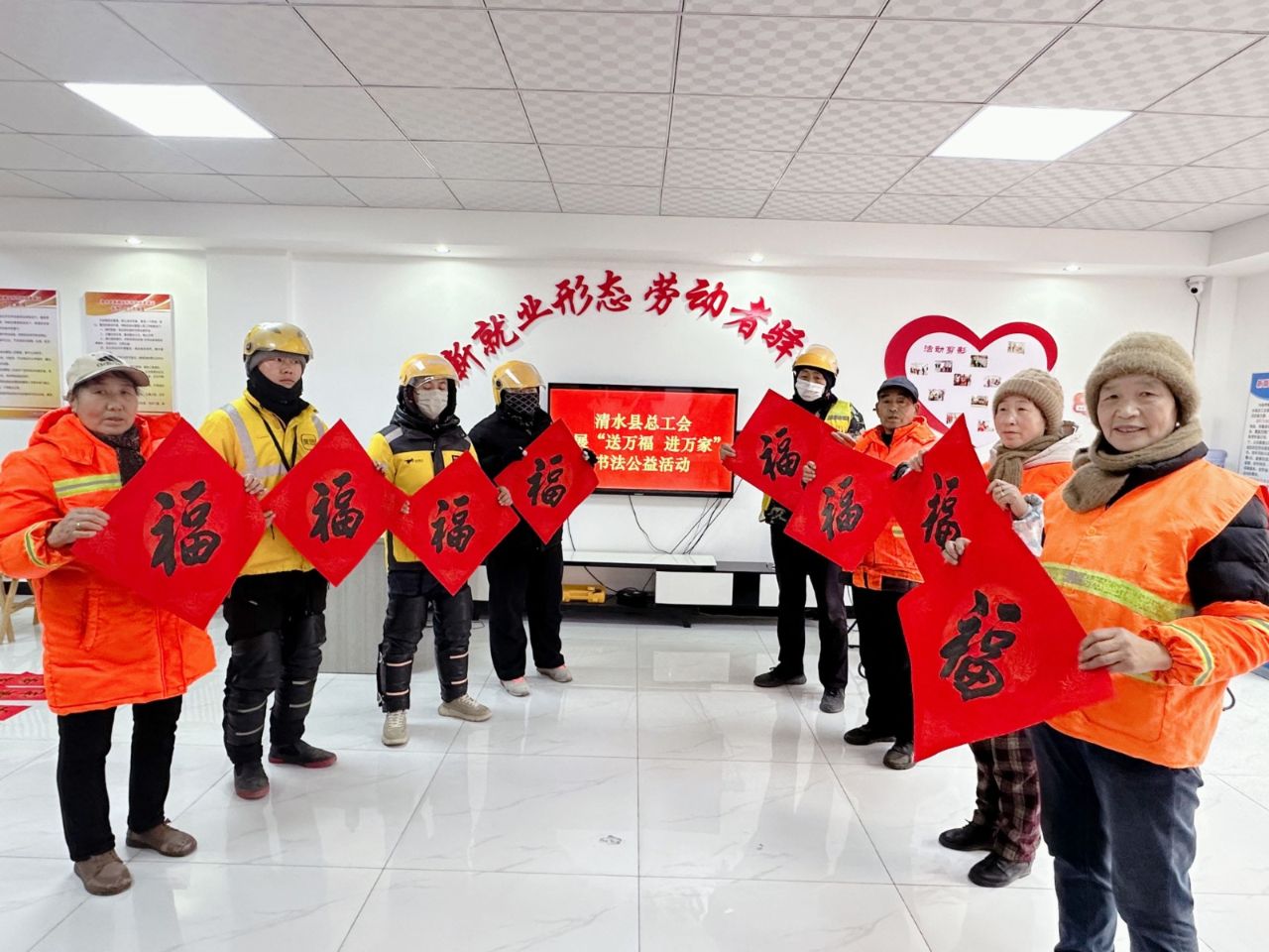 墨香凝福意 工会暖人心——清水县总工会开展“送万福、进万家”送春联活动